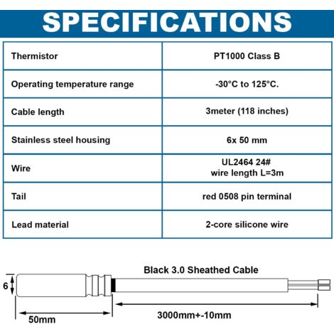 La sonde est hermétique, garantit une grande précision de mesure et réduit la latence. L'élément de capteur de température Pt1000 est monté à l'intérieur d'une gaine ou d'une sonde en métal. Cela la protège contre les dommages causés par l'environnement lorsqu'elle est insérée dans le système à mesurer Capteur de température petite structure, utilisation large, bonne fiabilité et temps de réponse thermique court, rapide et pratique Spécifications: Plage de température de fonctionnement : -55 °C à 120 °C. Fonction : le capteur de température PT1000 utilise un tout nouveau capteur de température PT1000 d'origine, et chaque broche de la puce est séparée par un tube thermorétractable. Convient pour : la sonde de température PT1000 en acier inoxydable peut mesurer la température directement dans l'eau ou la terre et est largement utilisée dans la surveillance de la température pour les aquariums, les appareils, les machines, les serres. Il peut prévenir efficacement les courts-circuits et a de bonnes propriétés d'isolation et d'étanchéité. Blindage externe : blindage isolé. Sonde de température PT1000 RS PRO, 6mm, L.50mm + 2m, 400°C max Matériau de qualité supérieure : capteur de température PT1000., Le boîtier de la sonde est en acier inoxydable. Longueur du câble : 3 m Quantité : 2 pièces. La couleur de l'objet affichée sur les photos peut être légèrement différente de l'objet réel. Capteur de température résstf PT100. De la théore à l'utlsaton... Capteur -55°C à 120°C Sonde Chauffage HVAC IOVEO Sonde PT100 - Capteur Température Avec Câble PVC Pour Chauffage Et Industrie Sonde De Température Pt100 Fonctionnement Capteur PT1000 Haute Précision Contenu de l'emballage : 2 capteurs de température PT1000., Avertissement : 1., Les mesures étant prises à la main, les tailles indiquées peuvent varier de 1 à 3 mm.