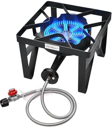 SOL DEL MARE - Barbecue à gaz propane à 3 brûleurs avec brûleur latéra Heavy Duty Single Burner GasOne Brûleur Au Propane Individuel - Brûleurs Au Propane Pour Cuisiner à L 'air Dernière Intervention Avec Bouclier Thermique Et Protection, Tuyau Tressé En Acier, Tête De Brûleur Tuyau de haute qualité : ce qui rend le brûleur à propane portable Gas One vraiment incroyable, c'est que l'ensemble de tuyau de haute qualité garantit une meilleure durabilité et une sortie de gaz constante dans le brûleur. C'est pourquoi notre brûleur d'extérieur dispose d'un corps en métal robuste avec brûleurs en fonte et d'un revêtement protecteur à haute température qui garantit une utilisation durable et une résistance exceptionnelle Notre brûleur au propane unique est durable, fiable et sûr, ce qui rend la cuisine plus agréable lors de vos aventures en plein air Conçu pour les personnes en plein air dernière intervention : rendez vos séances de cuisine en plein air plus agréables et cuisinez comme un pro avec le brûleur à gaz One pour extérieur propane Brûleur au propane haute performance : ce poêle au propane à brûleur unique dispose d'un design haute performance qui offre une flamme constante et continue pour une cuisson uniforme et garantit une cuisson rapide et une cuisson rapide sans brûler vos aliments. Lorsqu'il s'agit de cuisiner en plein air, vous cherchez avant tout une solution qui allie puissance et sécurité. Avec la « GasOne B-5200K Cuisinière d'extérieur », nous comprenons votre besoin d'une cuisson efficace tout en profitant des grands espaces. Grâce à son brûleur au propane et son tuyau tressé en acier haute pression, ce réchaud de camping vous offre les... Utilisez-le pour les cuisines dans le jardin, le camping, le hayon, la pêche ou la chasse et profitez d'une expérience de cuisine complète en plein air Conçu pour les personnes en plein air dernière intervention : rendez vos séances de cuisine en plein air plus agréables et cuisinez comme un pro avec le brûleur à gaz One pour extérieur propane.