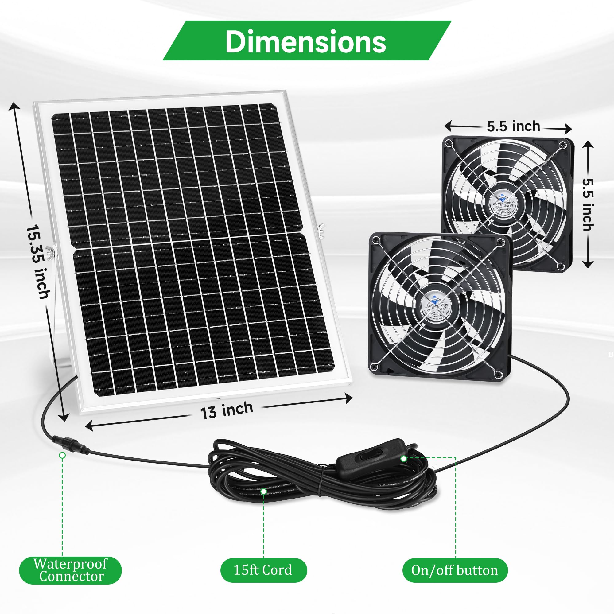 Cela garantit que vos appareils reçoivent une alimentation électrique stable et sûre. EN STOCK : Eosnow Kit de ventilateur d'extraction à énergie solaire, 10W, panneau solaire étanche, pour poulaillers et serres, 3114220029311 pas cher. Livraison rapide partout en France Ce n'est pas seulement un ventilateur, mais aussi un purificateur d'air ! Cela garantit que les panneaux solaires extérieurs sont capables de convertir efficacement la lumière du en électricité, exploitant essentiellement l’énergie de la nature de manière et respectueuse de l’environnement ! Le meilleur, c'est qu'il est idéal pour une variété d'endroits, y compris les serres, les animaleries, les cabanes dans les arbres ou les camping-cars, garantissant des niveaux de température confortables là où ils sont le plus nécessaires. Utilisation portable et polyvalente : doté de l'éclat de la flexibilité, notre ventilateur d'extraction solaire dispose de 4 œillets et de 4 ventouses gratuites, ce qui facilite sa fixation à n'importe quelle fenêtre à l'intérieur. pour maintenir un niveau de température confortable. Ventilateur d'extraction à énergie solaire 10W 5V ventilateur de panneau solaire en silicium Sortie de puissance stable du panneau solaire USB : équipés d'un régulateur de tension USB standard, nos panneaux solaires maintiennent toujours une sortie constante de 5 à 6 V. Mieux encore, il est idéal pour une variété d'endroits, notamment les serres, les animaleries, les cabanes dans les arbres ou les camping-cars, offrant des niveaux de température confortables là où ils sont le plus nécessaires., 1., L'efficacité des cellules solaires monocristallines peut atteindre 20 %., 2., Les panneaux solaires extérieurs peuvent convertir efficacement la lumière du soleil en électricité., 3., Garder l'air pur peut éliminer l'odeur des animaux domestiques, etc., 4., Équipé d'un régulateur de tension USB standard pour maintenir une tension de sortie de 5 à 6 V., 5., Portable, 4 œillets, 4 ventouses gratuites à fixer à la fenêtre pour une utilisation en intérieur., 6., Convient aux serres, aux animaleries, aux cabanes dans les arbres et aux camping-cars, etc. Ventilateur d'extraction et étanche IP65 : rigoureusement conçu et fabriqué ; Avec un indice d'étanchéité IP65 et sa durabilité même si vous êtes pris dans une averse torrentielle soudaine, ou même autour d'une piscine ou d'une plage. This 10W 12V solar ventilation kit provides an eco-friendly and autonomous ventilation solution for spaces like RVs, garden sheds, cabins, caravans, yachts, greenhouses, kennels, and chicken coops. It includes a 10W solar panel, a 9.5W fan, a protective grill, 3 meters of solar cable, a connector, and an IP44 switch. The fan's airflow under optimal sunlight is 220 m3/h Ventilateur Solaire Extracteur 10w Ventilateur Solaire,Mini Panneau Solaire 10 W, USB 5V / DC 18V Ventilateur D'extraction Pour Leroy Merlin 5 mm/8,6 x 7,5 x 0,1 pouces Taille du ventilateur d'extraction : environ 120 x 120 x 25 mm/4,7 x 4,7 x 1,0 pouces Liste des paquets : 1 x panneau solaire 1 x ventilateur d'extraction 2 x mousqueton 4 x ventouse Remarque : Veuillez noter que le nouveau type et l'ancien type de ce produit seront expédiés au hasard, et assurez-vous que cela ne vous dérange pas avant de commander.