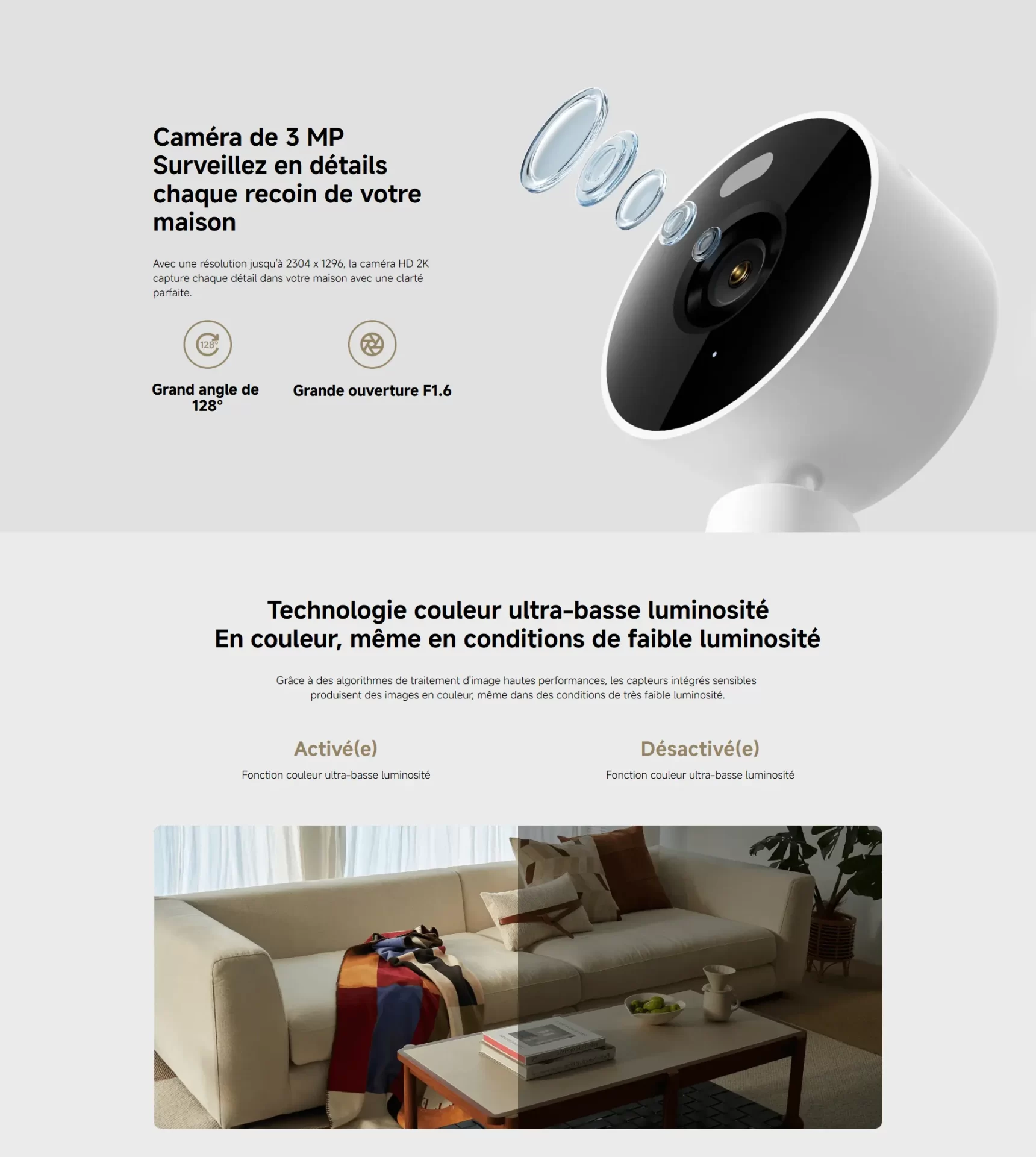 XIAOMI Smart Camera C100 | Qualité 2K Ultra Claire  3MP  | WiFi 6 Vision Nocturne Couleur Detection Humaine Ia Appel Vocal Appairage Bluetooth