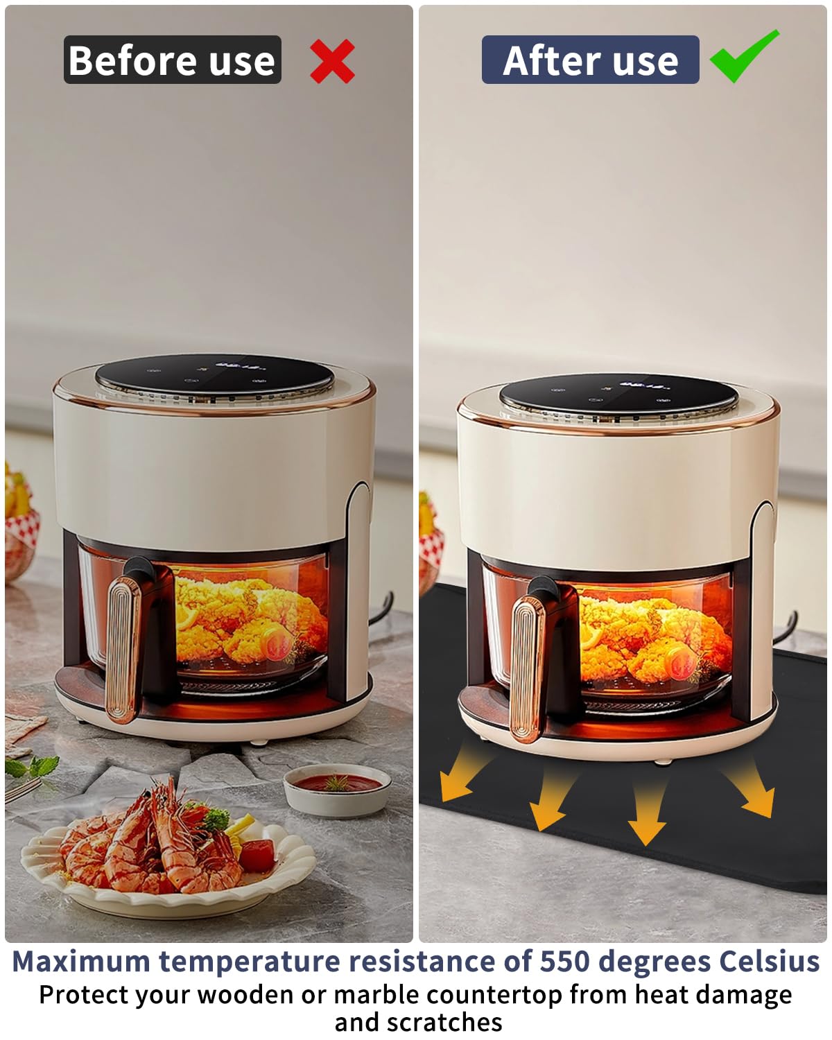 Ce Tapis d'isolation épais offre une protection fiable, efficace et sans traces, pour des plans de travail impeccables en toutes circonstances. Le tapis de cuisine en silicone ignifuge mesure 60 x 40 cm et constitue un accessoire indispensable pour votre cuisine. Conçu pour être utilisé avec des friteuses à air et comme tapis de protection de comptoir, il combine fonctionnalité et sécurité Tapis résistant à la chaleur Fabriqué en fibre de verre et en silicone, le Tapis d'isolation résiste à la chaleur jusqu'à 500 °C (1022 °F). 🔥【Facile à déplacer】Grâce à son revêtement en silicone lisse, le Tapis résistant à la chaleur facilite le déplacement des appareils de cuisine lourds sans effort. 🔥【Protégez votre surface de travail】Le Tapis résistant à la chaleur protège vos plans de travail en bois ou en marbre de haute qualité de la chaleur dégagée par les appareils électroménagers tels que les friteuses à air et les fours. Le tapis d'isolation, plus épais, convient à la plupart des appareils et ustensiles de cuisson à haute température, tels que les friteuses à air, les cafetières, les fours, les micro-ondes, les robots pâtissiers, les grille-pain, les centrifugeuses et les casseroles. 🔥【Tapis résistant à la chaleur】Fabriqué en fibre de verre et en silicone, le Tapis d'isolation résiste à la chaleur jusqu'à 500 °C (1022 °F). Tapis de cuisson antiadhésif silicone 60x40cm - de Buyer Il est également imperméable, antidérapant et antitache. Silicone Tapis de cuisson antiadhésif Macaron cuisson feuille résistant Tapis Isolant Tapis Résistant à La Chaleur 60x40cm,Tapis D'isolation,Tapis De Tapis Cuisson Utilisation polyvalente Le tapis résistant à la chaleur mesure 60 x 40 ou 46 x 38 cm. Facile à nettoyer et à ranger Le Tapis résistant à la chaleur est résistant à l'eau et à l'huile et facile à nettoyer. Après utilisation, essuyez-le simplement avec un chiffon humide ou lavez-le à l'eau chaude savonneuse. Tapis d'isolation est idéal pour garder votre cuisine bien rangée. Protégez votre surface de travail Le Tapis résistant à la chaleur protège vos plans de travail en bois ou en marbre de haute qualité de la chaleur dégagée par les appareils électroménagers tels que les friteuses à air et les fours.