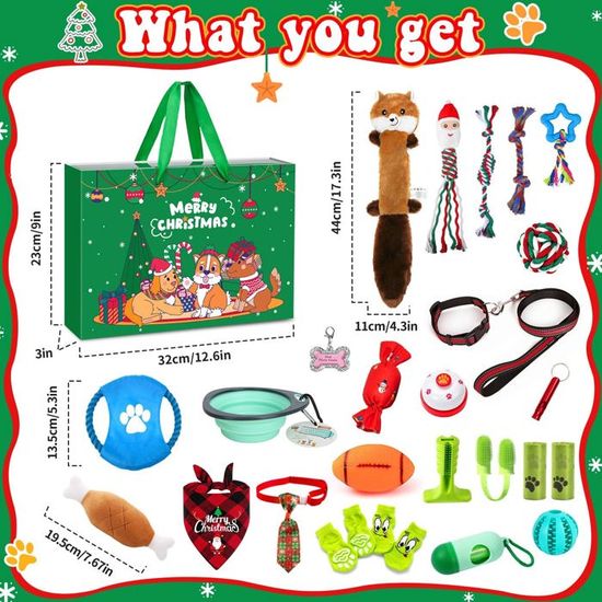 【Jouets pour Chiens de Haute Qualité】Les jouets en corde pour chiens sont fabriqués en coton 100 % naturel, lavable, non toxique et inodore, pour que votre animal puisse mâcher et jouer en toute sécurité. 15 Pcs Jouets pour Chien et Chiots, Qualité Supérieure - Cordes, Balles Jouets à mâcher avec ventouse pour chiens 👉 👉Nos ensembles de 25 pièces sont disponibles en différentes tailles, ce qui les rend très adaptés à toutes les tailles. 【Combinaison Ludique et Interactive】Le couinement intégré de la peluche produit des sons adorables qui attireront l'attention de votre chien. 👉 👉Ensemble de 25 jouets interactifs pour chiens, cordes en coton naturel, pour le soin des chiens de petite, moyenne et grande taille 👉 👉Matériau : plastique 👉 👉Couleur : conforme à l’image (en raison des différences entre les écrans, la couleur peut varier légèrement. 👉 👉Jouet à mâcher pour chiens : ce jouet maintient les chiens en forme et en bonne santé mentale. 【Meilleur Cadeau pour Chien】Ce calendrier de l'Avent permet non seulement à votre chien de jouer joyeusement à l'intérieur comme à l'extérieur, mais favorise également une relation plus chaleureuse et harmonieuse entre vous et votre compagnon. 👉Ensemble de jouets interactifs pour chiens, 25 pièces, cordes en coton naturel, pour petits, moyens et grands chiens. Jouets à Mâcher Chien Calendrier De L'Avent 2024, Calendrier De L'Avent 2024, Jouet Pour Chien, Calendrier De Noël Avec Cordes à Mâcher, Jouets Couineurs, Jouets De Dentition, Jouet De Noël, Cadeau De Noël Pour Petits Jouets Chien Noël Merci de votre compréhension. Archives des Jouets à mâcher, balles & cordes 【Interactif et Dressage】Lot de 24 jouets de Noël pour chiens. La combinaison de différents types de jouets pour chiens peut répondre aux besoins des chiens en matière de dentition, de jeu autonome et de dressage. 👉 👉Ces ensembles de jouets pour chiots peuvent facilement distraire les chiens, les aider à se détendre et à lutter contre la solitude et l'ennui. ) 👉 👉Poids du colis : 1200 g 👉 👉Dimensions du colis : 40 x 32 x 8,5 cm (une marge d’erreur de 1 à 3 mm est possible en raison des mesures manuelles). Les balles à friandises sont en caoutchouc naturel, plus solide et plus résistant aux morsures. Cette combinaison de jouets en corde à tirer, à mâcher et à secouer est idéale pour interagir avec votre chiot et renforcer sa relation. Lorsqu'ils ressentent de l'ennui, de la solitude, du stress ou une perte d'énergie, les chiens peuvent bénéficier d'un massage et d'un soulagement du stress en mâchant nos jouets à mâcher, nos jouets de dentition et nos balles couinantes. 👉 👉Caractéristiques : 👉 👉Le jouet à mâcher le plus populaire : nos différents jouets sont fabriqués en corde de coton naturel et en caoutchouc, offrant une excellente résistance, lavables et peu abîmés par les chiens.