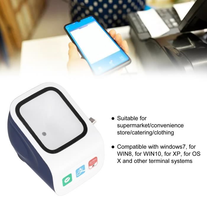 CAPACITÉ DE NUMÉRISATION EFFICACE : Le scanner 2D prend en charge une large gamme de types de décodage et peut lire rapidement et avec précision une variété de codes-barres et de codes QR, y compris les codes communs 128, code39, code93, EAN 13, EAN 8, UPC et plus encore. Scanner de codes-barres avec support, USB Wired Madagascar Le BRC2D est un scanner de codes-barres 2D haute performance capable de lire les formats QR Code, PDF417, Data Matrix et bien plus encore. Robuste, ergonomique et doté d'une connectivité USB Plug & Play, il convient parfaitement aux environnements logistiques, commerciaux et médicaux DÉTECTION AUTOMATIQUE : Le scanner USB utilise le mode de détection automatique/balayage continu, éliminant le besoin de numérisations déclenchées manuellement, ce qui améliore considérablement l'efficacité et la commodité du travail. RÉSISTANCE AUX CHOCS: Le boîtier du scanner est fabriqué dans un matériau robuste et durable avec une forte résistance à l'usure et aux chocs, ce qui peut maintenir une bonne utilisation pendant une longue période. Lecteur codes-barres mains libres Newland WD4 Series | Fiable, rapide INVITES AUDIBLES : Le scanner est équipé d'une fonction d'annonce vocale par haut-parleur, qui peut fournir un retour en temps réel sur les résultats de l'analyse via des invites audio, réduisant ainsi les erreurs et les angles morts opérationnels. Comment utiliser :plug and playListe des paquets :1 x scanner1 x Manuel d'instructions Scanner Code Barre Scanner De Codes-barres 2D Mains Libres QR Omnidirectionnel De Bureau Lecteur De Codes Barres Filaire Usb Detection Automatique Grand Lecteur De Codes Barres Pour Supermarche Bibliotheque Magasin De Detail