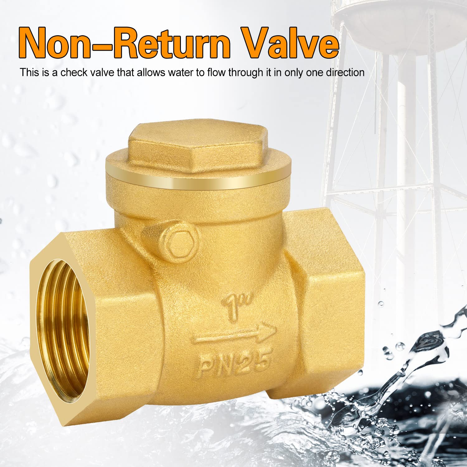 Circulateur Chauffage Clapet Anti-retour, Clapet Anti-retour DN25 à Filetage Femelle, Filetage En Laiton, Type Pivotant Clapet Anti-retour 1BSP 232PSI Empêche Le Retour D'eau Jetable, Pour De L'eau Clapet Anti Retour Pvc 100 Joint à ressort : Un mécanisme à ressort de précision assure une fermeture instantanée pour bloquer le reflux. Type de produit Clapet antiretour / Valve pour compresseur / Vanne d'arrêt / Colonne de douche encastrée / Joint / Réducteur de pression pour l'arrosage... Ce clapet anti-retour avec entrée femelle et sortie mâle s’installe sur une canalisation ou en sortie de pompe. Il autorise le passage de l’eau dans un seul sens et se ferme automatiquement si le flux s’inverse Construction en laiton durable : Le corps en laiton résistant à la corrosion assure une durabilité accrue dans les systèmes d'alimentation en eau, de chauffage et les applications industrielles. Convient à l'eau froide, aux fluides à faible viscosité et aux environnements à température modérée. Clapet anti-retour à ressort, DN25 2,5 c feelle x filetage âle Compatible avec les tuyaux DN25 standard pour une large gamme d'utilisations. Fonctionnement sans entretien : Le mécanisme autonettoyant empêche l'accumulation de débris pour des performances constantes. Appliquez du ruban d’étanchéité pour filetage sur le connecteur mâle pour une étanchéité optimale. Consignes de sécurité :Ne convient pas aux systèmes à vapeur, aux produits chimiques corrosifs ou aux systèmes d’huile à haute température. Évitez un couple de serrage excessif (maximum 35 Nm) pour éviter toute déformation du filetage. Filetages femelles et mâles universels : les extrémités à double filetage (1 po BSPP) simplifient l'installation dans les systèmes de plomberie résidentiels et commerciaux. Sa conception compacte résiste à des pressions allant jusqu'à 16 MPa pour un contrôle fiable du débit. SpécificationsMatériau : Corps en laiton CW617N, revêtement en PTFE, joints en nitrilePression nominale : 16 bar (232 psi) à 20 °CPlage de températures : -10 °C à 120 °C (fluides non corrosifs)Type de raccordement : Filetage BSPP femelle G1 (entrée) et mâle (sortie)Sens d’écoulement : Vertical/horizontal avec indicateur de marquageConformité : Conformité aux normes de sécurité des matériauxContenu de l’emballage :1 clapet anti-retour en laiton DN25 avec joint d’étanchéité préinstalléGuide d’installation avec spécifications de couple de serrage :Lors de l’installation à l’aide d’embouts, assurez-vous que le sens d’écoulement est aligné avec le marquage du clapet.