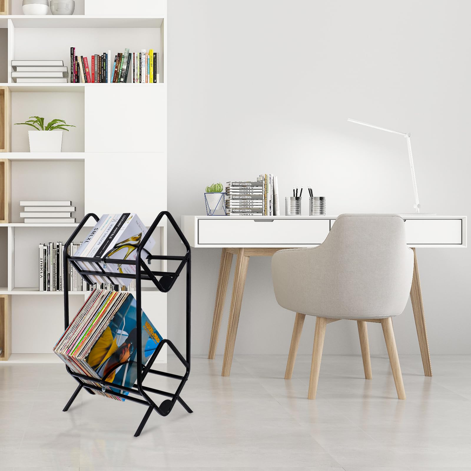 étagères de disques vinyles - France Rangement Disques Vinyle Bibliothèque Meuble De Rangement Support De Rangement Pour Disques Vinyles - Facile U00e0 Installer Support Vinyle Mural Support Rangement Disques Vinyle 100 Disques Avec cet élégant support de stockage de vinyles, vous pouvez facilement naviguer parmi vos disques, albums et livres Etagère de rangement à deux étages : l'étagère de disques vinyle a deux étages, la hauteur entre les étages supérieur et inférieur est de 49cm, l'angle d'inclinaison de 45° des étagères rainurées en forme de V peut présenter les disques, facile d'accès, les étages supérieur et inférieur peuvent séparer les différentes collections de disques vinyle, mais ne seront pas faciles à faire tomber, Taille : 32cm (W) x 40cm (L) x 79cm (H) La surface est recouverte d'un revêtement protecteur pour aider à protéger les disques vinyles, et les patins en caoutchouc sur les pieds garantissent que la surface de la table n'est pas soumise à l'usure, tout en assurant la stabilité sur le tapis Destinées à accueillir les 33 tours, les nouvelles étagères murales de rangement vinyle permettent de stocker une multitude de vinyles grâce à la grande solidité Il peut également être utilisé comme support de meuble pour décorer votre maison ou votre bureau, et il ne vacillera pas d'un côté à l'autre lorsque vous y placerez des disques ou d'autres objets de collection Matériau résistant : Ce rangement pour vinyles est renforcé par un cadre métallique anti-rouille et une structure à poutres croisées, offrant un support... Assemblage facile : livré avec tout le matériel et les instructions. Robuste et durable : le rayonnage à disques est fabriqué en métal de haute qualité, qui ne se déforme pas facilement et a une longue durée de vie.