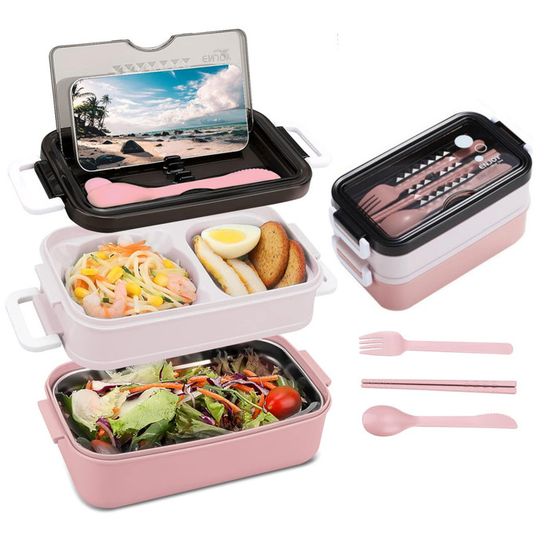 BENTO BOX Lunch Box Bento & Set De Couverts En Bois Japonais Micro Ondable Amp Lave Vaisselle Conserve Fraicheur Pique Nique Lunch Box Pour Enfant Et Adulte Zero Dechet Ecologie Blanc Et Noir Bb1 Lunch Box Sans BPA Micro-ondable Tohoee Boite Bento Lunch Box 1300ml Boite Repas Box Enfant Adulte Sans BPA Avec Bol De Soupe Et Boîte Repas Bento 3 Compartiments Couverts Inclus Sans Bpa Valve de ventilation Ce tupper dispose d'une valve dans le premier compartiment pour que votre nourriture puisse être chauffée au micro-ondes. Description du produit Boîte à déjeuner avec compartiments Grâce à la boîte à lunch à compartiments, vous pourrez emporter votre repas au travail ou à l'école sans mélanger les différents types de nourriture. Notre boîte bento est sans BPA, ce qui le rend sûr de transporter votre nourriture. La lunch box incite aussi l'enfant à s'asseoir pour ouvrir sa lunch box pour enfant et prendre son goûter. Ce moment est important et les enfants peuvent partager leurs goûter entre eux Vous pouvez réchauffer votre nourriture au micro-ondes sans aucun problème car elle est fabriquée en plastique résistant. Découvrez les bentos, lunch box et boite repas inox ou plastique sans BPA de Yoko design. Elles sont durables et disponibles en différentes tailles Fermeture hermétique Grâce à ses fermetures à clip, vous pouvez transporter votre boîte à lunch sans craindre qu'elle ne s'ouvre et ne tombe votre nourriture. Ce tupperware est léger et confortable à transporter, livré avec des couverts inclus dans un compartiment séparé.