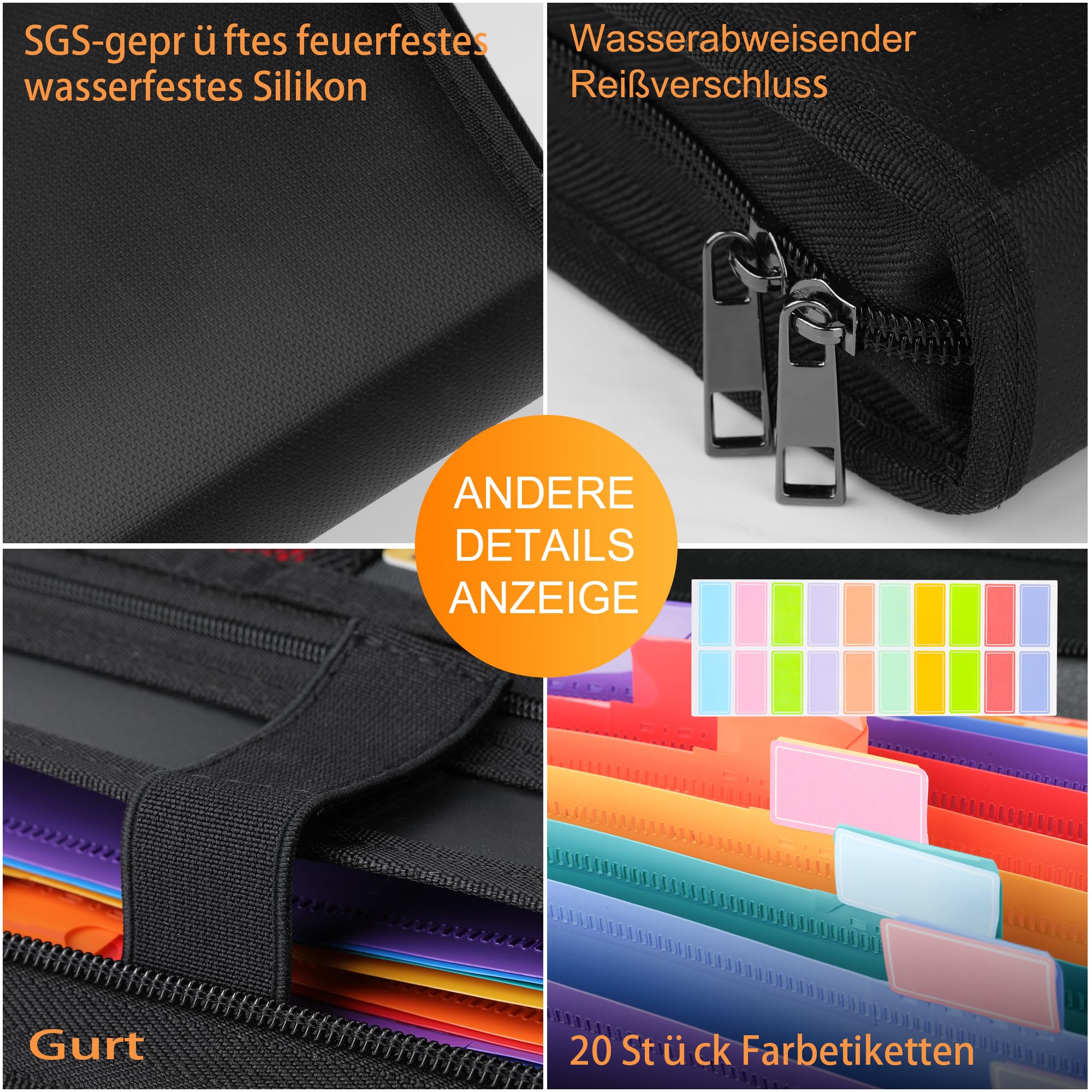 Une protection optimale pour vos archives précieuses. Fabriqué en tissu de fibres de verre double couche revêtu de silicone, ce porte-documents ignifugé A4 protège vos précieux documents contre le feu, l'eau et la poussière Description du produit – Classeur ignifuge et imperméable Protection ultime pour vos documents Conçu pour sauvegarder vos archives les plus précieuses, ce classeur en tissu de fibre de verre enduit de silicone (hypoallergénique) résiste à des températures extrêmes (jusqu’à 2000°F) et repousse les liquides. 【Organisation multifonctionnelle】Avec 13 compartiments individuels, cette chemise A4 offre un rangement pratique : 1 poche zippée, 1 compartiment à stylo, 6 emplacements pour cartes, 4 petites poches en mesh, 4 poches mesh intermédiaires et 1 compartiment principal. Une solution de rangement élégante et structurée pour garder l’essentiel à portée de main. À glisser dans un sac pour le bureau, les déplacements professionnels ou même les voyages. Étiquettes colorées : permet de catégoriser vos dossiers (exemple : Urgent, Fiscalité, Voyage) en un geste. A4 Trieur Document Avec Couvercle, 2 Pièces Trieur Document Avec Fermeture 13 Compartiments Fabriquée en tissu de fibre de verre enduit de silicone (non irritant), elle résiste à des températures extrêmes allant jusqu'à 2000°F. Organisation optimisée Avec 13 compartiments soigneusement pensés, ce classeur A4 offre : 1 poche zippée sécurisée pour les objets fragiles 6 emplacements cartes (CB, badges) 4 poches mesh transparentes (tailles S/M) pour visibilité immédiate 1 compartiment principal spacieux pour documents A4 1 rangement stylo intégré Praticité à la française Double fermeture éclair : prévient l’ouverture accidentelle tout en garantissant un accès fluide. 【Matériau ignifuge et imperméable】Notre chemise de classement est conçue pour protéger vos documents les plus importants. Porte-docuents ignifuge 5200℉ A4 - Boîte de rangeent avec 13... Organisation Documents Factures Reçues Portable Ignifuge JUNDUN Porte-documents Ignifuge Avec Serrure, Trieur A4 Porte-documents Avec Poches Zippées Mobilité élégante Doté d’une poignée renforcée, ce classeur s’emporte partout : Bureau : gardez vos dossiers clients à portée de main Domicile : archivez les factures importantes Voyages : stockez passeports et billets en sécurité Polyvalence au quotidien Adapté à tous vos supports : Papiers (A4, feuilles volantes) Objets plats (cartes, chèques, tickets) Accessoires (stylos, clés USB) Pourquoi choisir ce classeur ? Normes de sécurité : testé en conditions réelles (feu/eau) Design ergonomique : 700g seulement, avec revêtement doux au toucher Durabilité : coutures renforcées et zip métallique anti-corrosion