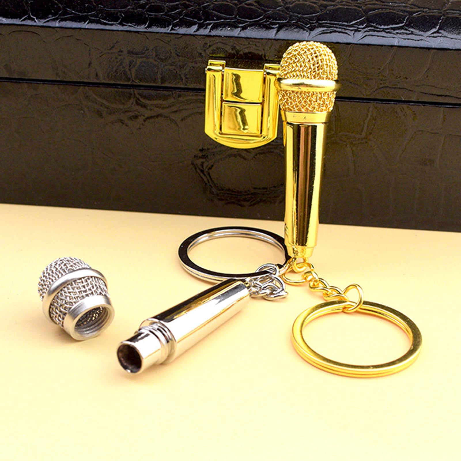 Porte-clés Saxophone Miniature En Métal, Bijou Personnalisé Pour Porte-clés Doré Argenté Tendance Porte-clés Volant 3 Branches - Accessoires Camion Pendentif Clés Karaoké Style Libérez votre élégance avec le porte-clés microphone, un mélange parfait de style et de fonctionnalité pour les amateurs de musique. Convient pour les chanteurs, les musiciens et toute personne passionnée par la musique, ce porte-clés résonne avec la foule tendance qui apprécie les articles uniques sur le thème de la musique. Dimensions : environ 11,9 x 6,8 x 3,2 cm., Couleur : doré/argenté., Poids : 23 g. Porte clés en argent massif motif micro Remarque : Les mesures étant prises à la main, les tailles indiquées peuvent varier de 1 à 2 cm. PORTE-CLES - ETUI A CLE,Pink--Mini boîte à musique en acrylique, porte clés, boîte à musique... Assurez-vous que cela ne vous dérange pas avant de commander., 2., La couleur de l'article peut varier de celle de la photo, en fonction des paramètres d'affichage et de luminosité de votre ordinateur., Contenu : 1 porte-clés. Surprenez les amateurs de musique dans votre vie avec ce porte-clés créatif et tendance qui sert également de moment mémorable pour les anniversaires, les vacances ou toute autre occasion festive.