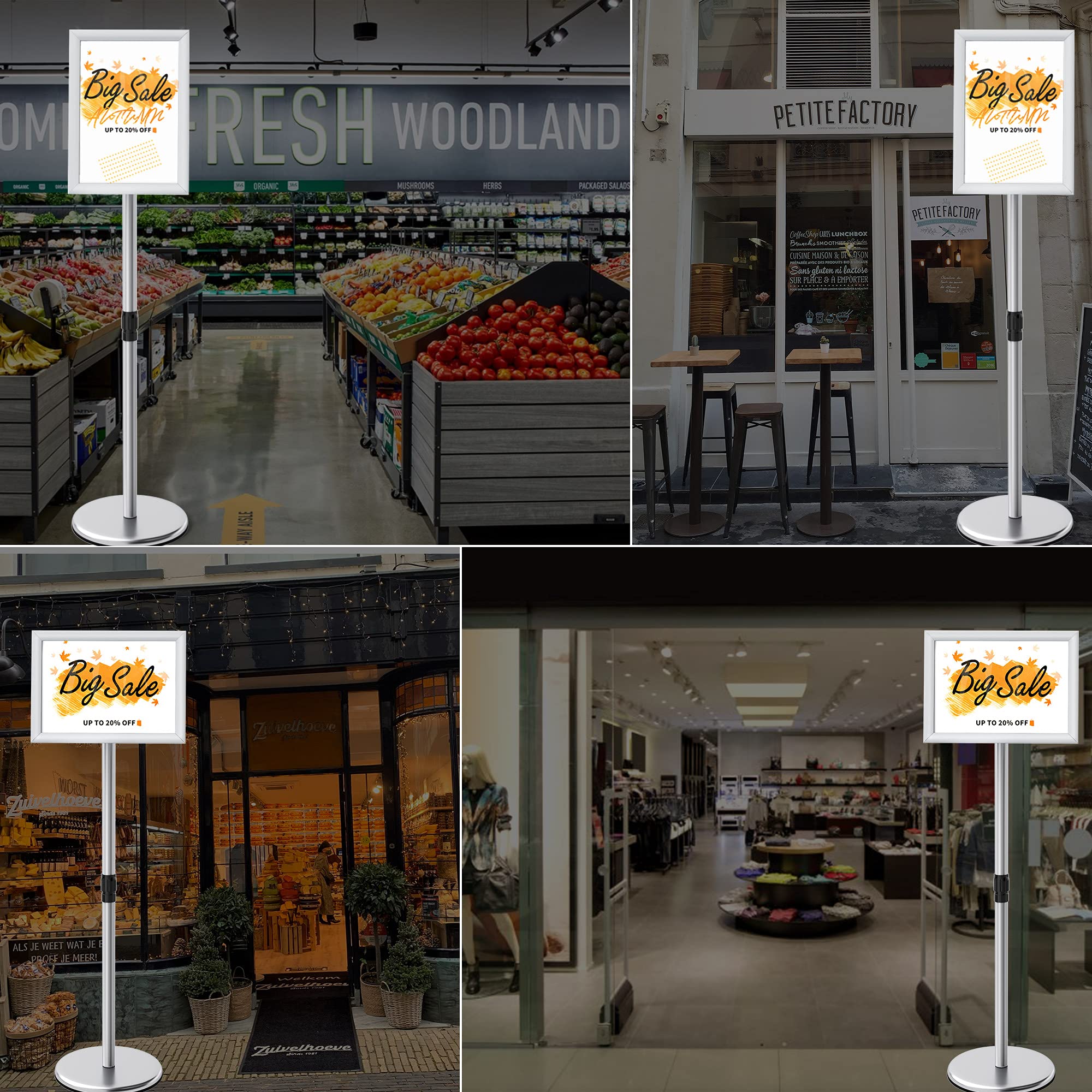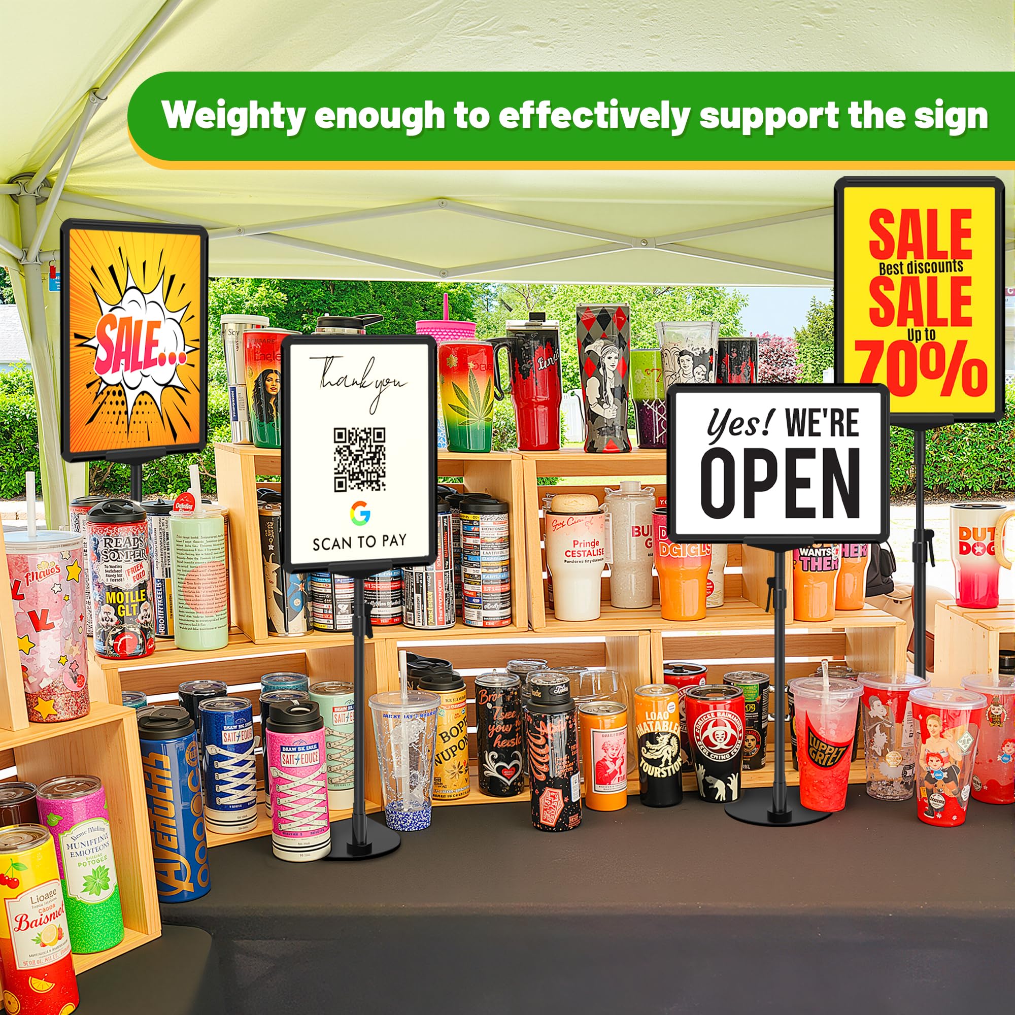 Hauteur verticale fixe de 121 cm (support de sol), garantissant une excellente visibilité dans tous les environnements Support De Signalisation Réglable Sur Pied Parfait pour menu restaurant, publicités et informations Garantie VAIIGO: Service après-vente professionnel. Idéal comme porte affiche extérieur et présentoir publicitaire robuste pour une utilisation intensive VAIIGO Présentoir A4 Porte Affiche sur Pied Réglable - Support d'affichage pour Affiche et Panneau Publicitaire - Présentoir Menu Restaurant Extérieur avec Base Stable - Magasin, Commerce - Noir Usage Polyvalent : Commerce, Restaurant, Événement: Parfait comme porte menu, panneau publicitaire, enseigne magasin, signalétique d'orientation ou pour salons. Un support d'affichage très polyvalent pour de nombreux usages Porte affiche a4 horizontal sur pied - Chevalets Totems Lutrins... Cadre Aluminium Affichage A4 VAIIGO Présentoir DIN A4, Stands De Présentation Avec Base, Support De Panneau Extérieur, Porte-Affiche En Métal – Support Pour Publicités, Menus & Posters (Noir, A4 Vitrine Murale Hauteur Fixe pour Affiche A4: Présentoir A4 spécialement conçu pour les affiches 21 x 29,7 cm. Supports d'affiches Faciles à Utiliser et à Entretenir & Présentoirs Polyvalents Idéal comme porte affiche extérieur et présentoir publicitaire robuste pour une utilisation intensive Angle d'Affichage Réglable à 360°: Ce support de panneau permet une rotation à 360° et un basculement sur 180° pour un réglage facile en format portrait ou paysage Support d'Enseigne Robustepour: Notre présentoir lourd a une base métallique de 2,6 kg, plus stable et durable que les supports ordinaires. Une lentille PVC protectrice anti-UV protège des intempéries, de la poussière et des traces, gardant vos affiches toujours claires Il est plus stable et plus durable que les présentoirs à affiches ordinaires. Si vous rencontrez un problème, contactez-nous pour une solution satisfaisante