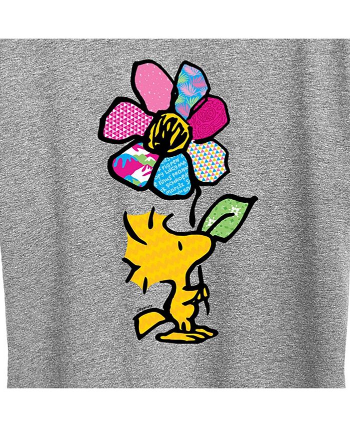 Air Waves Trendy Plus Size Peanuts Woodstock Flower Graphic T-shirt