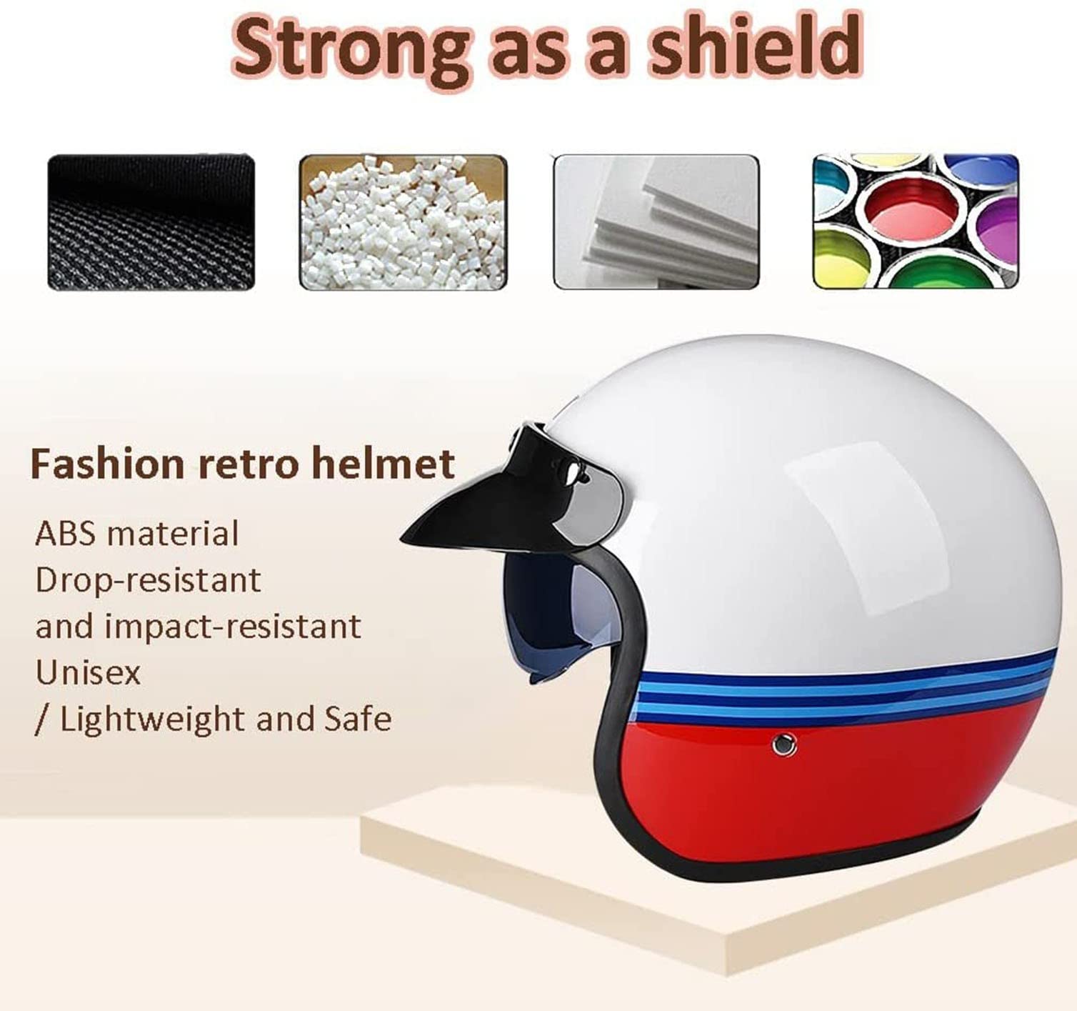 【CASQUE BOL HOMOLOGUÉ ECE - SÉCURITÉ MAXIMALE】Fabriqué en ABS technique résistant aux chocs et équipé d'une couche EPS haute densité, ce casque jet pour moto absorbe 70% des impacts., Homologué ECE 22., 06, il protège efficacement la tête tout en restant léger (700g). Ce demi-casque Uueybsg allie look vintage et homologation ECE 22.05/DOT. En ABS léger (environ 950g) avec couche EPS haute densité pour une protection optimale Parfait pour les hommes et femmes recherchant un casque moto homologué, vintage et polyvalent (scooter, VTT, mobylette). 【ULTRA-LÉGER POLYVALENT】Avec seulement 700g, ce casque bol réduit la fatigue cervicale. Choix idéal pour les casques jet moto homme/femme exigeant style et praticité. Casque Léger 700g ABS Casque Ouvert Cruiser Casque Moto Demi-Jet Vintage - Certifié ECE/DOT Cuir ABS Casque Moto Vintage Casque Scooter Cruiser Unisexe Idéal pour les longs trajets en quad ou trottinette électrique. 【ENTRETIEN FACILE DURABILITÉ】La structure en ABS renforcé et la doublure lavable résistent à l'usure et aux intempéries. Ce casque moto noir ou vintage reste hygiénique grâce aux tissus. Ce casque scooter homme/femme offre un maintien ferme sans pression, compatible avec les lunettes. Vintage Demi Casque De Moto,ECE Homologué Casque Moto Jet à Face Un must pour les passionnés de moto cross ou modulable. CASQUE MOTO SCOOTER CASQUE DE MODE: Design extrêmement élégant avec de nombreuses fonctionnalités avancées, vous avez besoin d'un casque pour les vélos de rue, les voitures de course, les croiseurs, les scooters