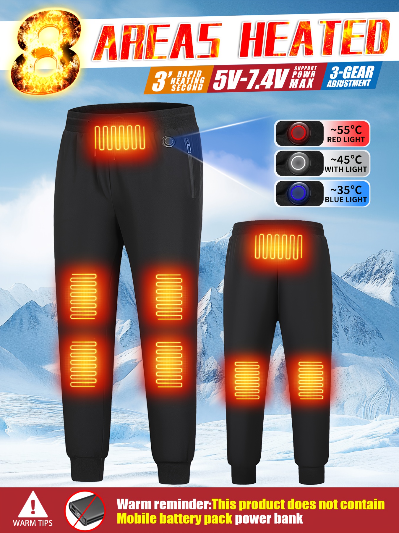 Choisissez différentes méthodes de chauffage en fonction des conditions météorologiques. Il est compatible avec différentes batteries externes. Le pantalon chauffant pour homme est facile d'entretien et peut être lavé en machine/à la main. Parfait pour les activités en hiver, le travail en plein air, le ski, la pêche sur glace, les trajets quotidiens au travail, la randonnée, le camping, la chasse, la moto, etc. Batterie incluse : le pantalon de randonnée chauffant dispose d'une batterie de 10 000 mAh. Chauffage intelligent à 10 zones : notre pantalon en laine d'agneau chauffé par USB dispose de 10 zones de chauffage qui offrent une chaleur complète pour... Quel est le Meilleur Pantalon Chauffant ? Collection 2025 [Support de vente] Nous offrons une garantie d'un an sur le pantalon chauffant avec pack de batterie. Si vous avez des questions sur le pantalon chauffant électrique, veuillez nous contacter à tout moment. Inclus : un pantalon chauffant noir, une batterie DC de 3,5 mm et un manuel d'utilisation (français non garanti). Tendance et confortable : la combinaison d'un pantalon chauffant d'extérieur et d'un système de chauffage très efficace assure une chaleur agréable. Pantalon Chauffant 8 Zones Pantalon Chauffant Pour Hommes Et Femmes - ® MOTIVE Pantalon Chauffant Hiver Vêtements chauffants en matériau doux, léger, coupe-vent et imperméable. ... avec Chargeur de téléphone Portable Micro USB C Batterie Externe légère et compacte En mode haute température, la durée de chauffage du pantalon chauffant est de 7,4 V 2,5 heures ; avec 5 V 3 heures. Le pantalon chauffant léger est doté d'un système de chauffage en fibre de carbone de haute qualité et dispose de 8 zones de chauffage pour le milieu du corps au niveau des jambes, du ventre, de la taille et des genoux. Un compartiment à piles séparé se trouve dans la poche zippée du pantalon chauffant. La taille élastique avec cordon de serrage est réglable et s'adapte aux tailles américaines et européennes. Cliquez pour sélectionner le niveau de chauffage : haut, moyen ou bas. Veuillez vous référer au tableau des tailles pour choisir la bonne taille.