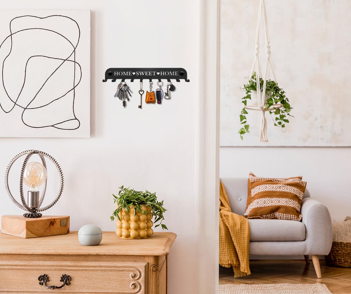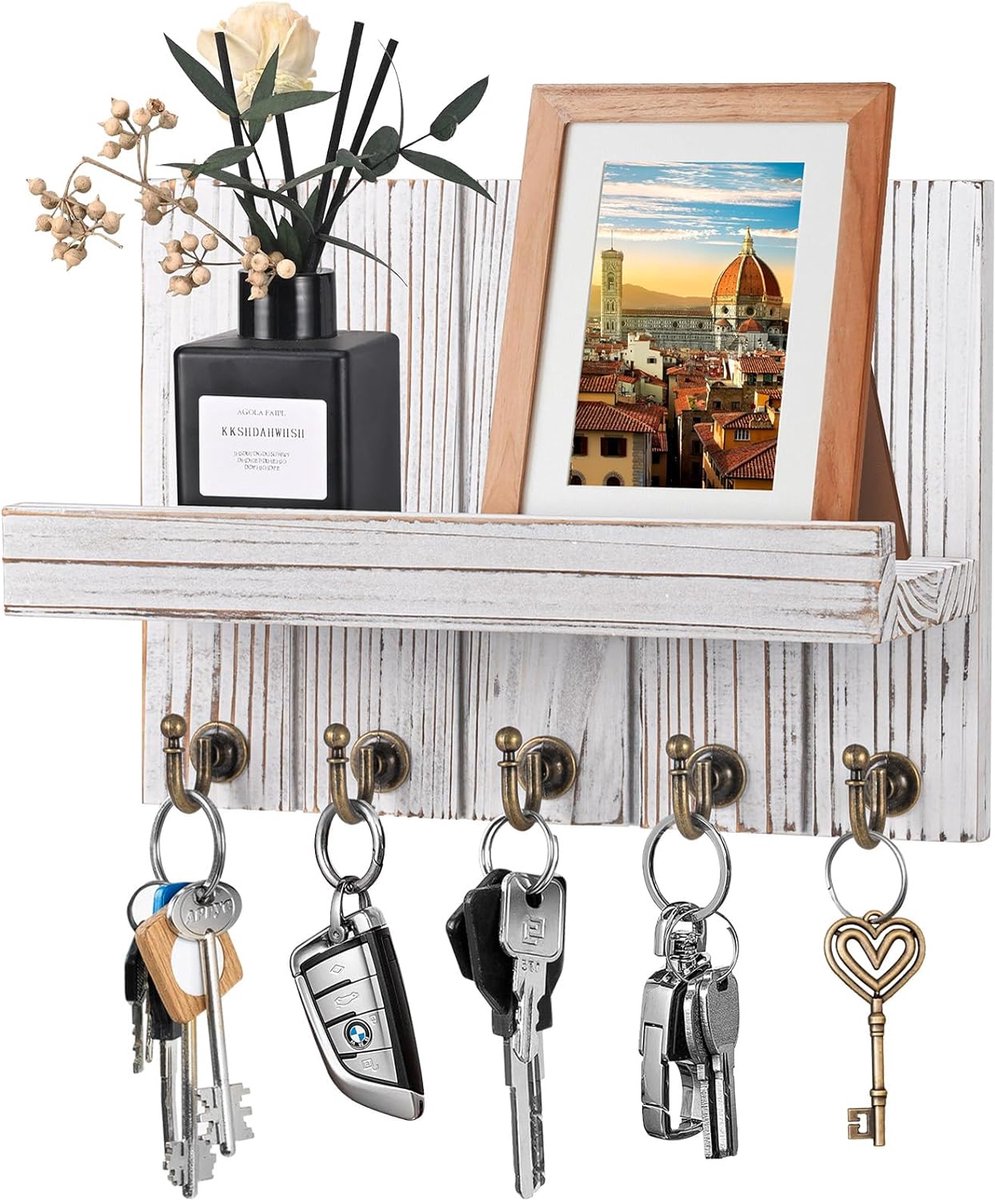 Grande capacité : Comprend 6 crochets robustes pour les clés ou petits accessoires, ainsi qu’une étagère supérieure plate pour des objets comme des cadres photo, des bougies ou des diffuseurs Montage sans clous : Le dos autocollant puissant adhère fermement, protège les murs et peut être repositionné sans laisser de résidus Design moderne : Ce porte-clés s’adapte à différents styles de décoration intérieure, servant à la fois d’organisateur fonctionnel et d’élément décoratif Support Mural Clés Crochets Design Crochets Adhésifs Porte-clés Mural Niffgaff 6 Crochets - Adhésif Puissant Sans Perçage - Rangement Entrée Range Clef Crochets Muraux Autocollants Sans Perçage Ce porte-clés permet d'accéder facilement à vos clés et de les organiser. Les crochets situés en bas permettent de ranger vos clés ou vos poches, tandis que le plateau supérieur reste libre pour d'autres petits objets Porte-clés autocollant avec petite étagère et 6 crochets métalliques. En 1 fois. 17,45 €. Prix de comparaison. i. 25,50 €. 17 €45. En 4 fois. 4,48 6 Crochets Avec Étagère, Étagère Flottante En Bois De 68 Cm Avec Lèvre