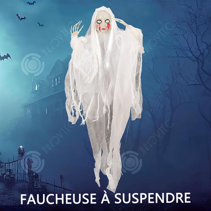 Qualité supérieure – La faux tête fantôme effrayante est fabriquée avec des matériaux de qualité supérieure que vous pouvez utiliser année après année Lot de 6 faux Halloween – La faucheuse Scythe est composée de six pièces à visser rapidement et facilement les unes dans les autres, 146 cm démontable et peut être ajustée en longueur, idéal pour les enfants et les adultes Détails anxieux et secrets – La tête de la faucille est livrée dans une couleur argentée rafraîchissante, tête de mort tridimensionnelle de 8 cm d'épaisseur, corps de tige filetée, déclenche l'horreur à chaque fête et vous fait l'incarnation de l'obscurité Décoration animée de la Faucheuse d'halloween, 175 cm, avec chaîne, Squelette Grandeur Nature avec Yeux Lumineux, Son Effrayant (activé par Le Son Conquérir la niche d'Halloween – Superum grand sense vous permet de donner un sentiment réaliste que la mort est imminente, un symbole éternel de sombre, d'éphémère et même de mort Horreur et apparence effrayante : transformez votre espace en une scène hantée avec notre faucheuse fantôme à suspendre de 109,2 cm. Cette décoration étrange dispose d'une tête de citrouille qui évoque une atmosphère d'Halloween rafraîchissante Accessoire Halloween Adulte Enfant Costume D'Halloween Effrayant De Faucheuse, Costume D'Halloween Effrayant Avec Faux Et Yeux Rouges Lumineux Dans Le Noir Pour Enfants Et Adolescents Faux Squelette Arme Démontable 6 Pièces Ajoute une touche d'horreur supplémentaire à votre look : ajoutez une touche d'horreur supplémentaire à votre costume d'Halloween avec notre ensemble de cape comprenant une robe à capuche, un masque de crâne, des gants crâne, une faux et des lunettes de soleil