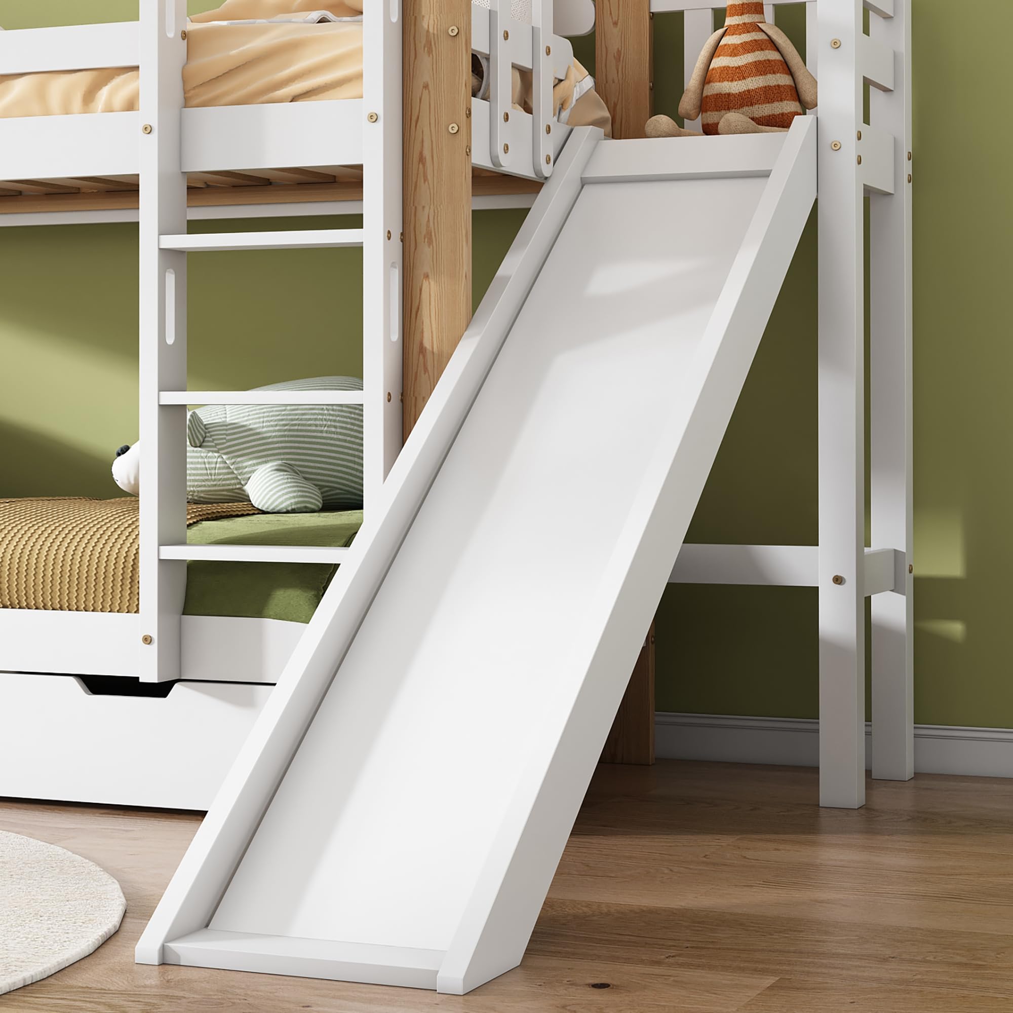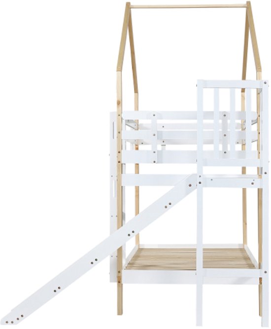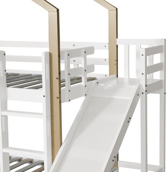 [Solution peu encombrante] Ce lit superposé est une excellente solution peu encombrante pour les chambres d'enfants. Ce lit superposé avec toboggan et barrières de sécurité offre un environnement de sommeil amusant et sûr aux enfants, encourageant l'imagination et le jeu C'est une solution peu encombrante qui est non seulement pratique, mais qui transforme également la chambre d'enfant en un monde de jeu imaginatif., Points de vente : 1., Échelle droite à trois marches sécurisée 2., Structure confortable en forme de maison 3., Toboggan amusant Poids et dimensions Dimensions totales : 245*164*223 cm Poids total : 57,5 kg Matelas adaptés (matelas non inclus) : 90 x 200 cm Capacité de charge : lit : 120 kg toboggan : 25 kg Caractéristiques Nom du produit : lit superposé avec toboggan Couleur : blanc + naturel Matériau du cadre : pin + MDF Matériau des lattes : bois Procédure de montage : à installer soi-même Nombre de colis : 3 Remarque : ce produit comprend 3 colis. La disposition verticale des lits permet d'utiliser efficacement l'espace, laissant ainsi plus de place dans la chambre pour d'autres activités. La combinaison simple de couleurs naturelles et blanches s'adapte à différents styles et préférences et rend la chambre d'enfant à la fois pratique et esthétique. [Caractéristiques de qualité et de conception] Ce lit superposé de haute qualité est composé d'un cadre en bois de pin robuste et de lattes denses qui garantissent durabilité et sécurité. La barrière à quatre côtés au niveau supérieur protège les enfants contre les chutes pendant leur sommeil. Lit Superposé 90/120x200cm Pour Enfants Avec 2 Tiroirs, Armoire D Blanc Et Naturel Sans Matelas 97226864 [Échelle sécurisée] L'échelle à trois marches menant à l'étage supérieur est sûre et fiable, elle permet de gagner de la place et permet aux enfants de monter et descendre facilement du lit. [Le rêve d'enfant sous forme de maison] Ce lit superposé est conçu pour ressembler à une petite maison, ce qui le rend particulièrement attrayant pour les enfants. Il favorise l'activité et le plaisir dans la chambre des enfants. L'association de blanc et de bois massif met en valeur la chambre d'enfant. lit mezzanine enfant 90x200 Certification EN 747-1:2024 Lit Avec Toboggan échelle 3 Marches Lit Superposé 90x200cm, 2 Places, Avec Toboggan Et échelle D'angle à Trois Marches, Cadre De Lit Lit Avec Toboggan échelle Sécurisé Les enfants peuvent glisser en toute sécurité depuis le lit supérieur, ce qui leur offre une façon ludique et amusante de se lever le matin.