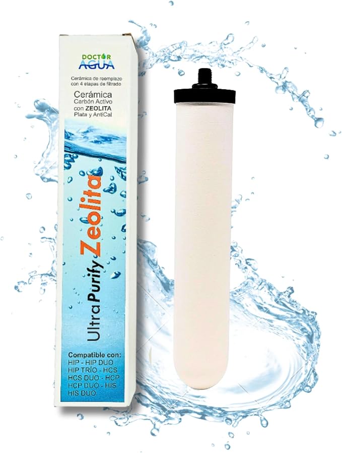 Filtre écologique : pas besoin d'électricité, ne gaspille pas d'eau, conserve les sels minéraux de l'eau. HIGH PERFORMANCE - HCP Ultra Purify worktop water filter with zeolite and filtration capacity of 300 litres per hour at a constant pressure of 3 bar. Instant purified water, no wasted water and no need for electrical connection Filtre à eau HCP Ultra Purify écologique avec zéolite sur plan de travail 300 l/h. Équipement portable idéal pour le transport en cas de déménagement. Il est recommandé de remplacer le filtre à eau Ultra Purify par Zeolite une fois par an. Installation et entretien : très facile à monter. S'installe en deux minutes., Certifié NSF. Filtre Eau Robinet Doulton HCP sur Evier Élimine 99 % d'impuretés., Bactéricide antiviral. Zeolite | Zéolite naturelle. Tamis moléculaire Filtre élimination Impuretés 99.99 DOCTOR AGUA Filtre à Eau HCP Ultra Purify Avec Zéolite Filtre Eau Conservation Minéraux Filtre écologique à action bactéricide, antifongique, antivirale et désinfectante grâce à son système exclusif en 4 phases dans une seule cartouche : céramique naturelle d'ultrafiltration - particules d'argent à action bactéricide, antifongique, antivirale et désinfectante - Bloc massif de charbon actif issu de coque de noix de coco avec zéolite - Perles réductrices de calcaire Eau purifiée instantanée, pas de gaspillage d'eau et pas besoin de raccordement électrique. Système de filtration avec zéolite capable d'éliminer et de retenir les métaux lourds, le chlore, les médicaments, les produits chimiques en général, les mauvaises odeurs et le mauvais goût tout en conservant tous les sels minéraux présents dans l'eau si nécessaires à la santé. Qualité de l'eau : filtre à eau domestique qui permet d'avoir une eau pure et sûre pour tout usage alimentaire : pour boire, cuisiner, infusions, laver les fruits et légumes. Contrairement au système de filtration par osmose, ce système est écologique, n'élimine pas les sels naturels de l'eau, ne gaspille pas d'eau, ne nécessite pas d'électricité et ne génère pas de déchets.