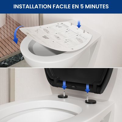 Abattants De Wc, Couvercle De Toilette Carré En U Avec Couvercle Ultra Couvercle WC Amovible Facile Nettoyer Abattant WC Avec Système D'abaissement Automatique En Duroplast Anycee Max Couvercle De Toilette, En Forme De D,noir Couvercle WC Amovible Nettoyage Facile 𝐒𝐂𝐇Ü𝐓𝐄 développe des produits pour le domaine sanitaire en tant que fabricant allemand leader depuis plus de 40 ans. ✔ Compatibilité : nos abattants de toilette sont universels et s'adaptent à toutes les céramiques standard habituelles. Qualité : notre siège de toilette est testé avec 15 000 abaissements dans notre propre assurance qualité. Achetez SENSEA PURITY Abattant de WC ovale, avec système d'abaissement automatique, fonction de libération rapide, max. 150 kg, MDF FSC, noir, couvercle de toilette, lunette de WC Ainsi, nous nous assurons que nous ne fournissons que des sièges de toilette de qualité supérieure. ADAPTÉ : les abattants de toilette sont universels et s'adaptent à toutes les céramiques standard habituelles. A PROPOS DE NOUS. Jeux & Loisirs. Image & Son Testé avec une capacité de charge de 250 kg et extrêmement résistant grâce au revêtement spécialement développé de l'abattant WC. Assure propreté et hygiène.