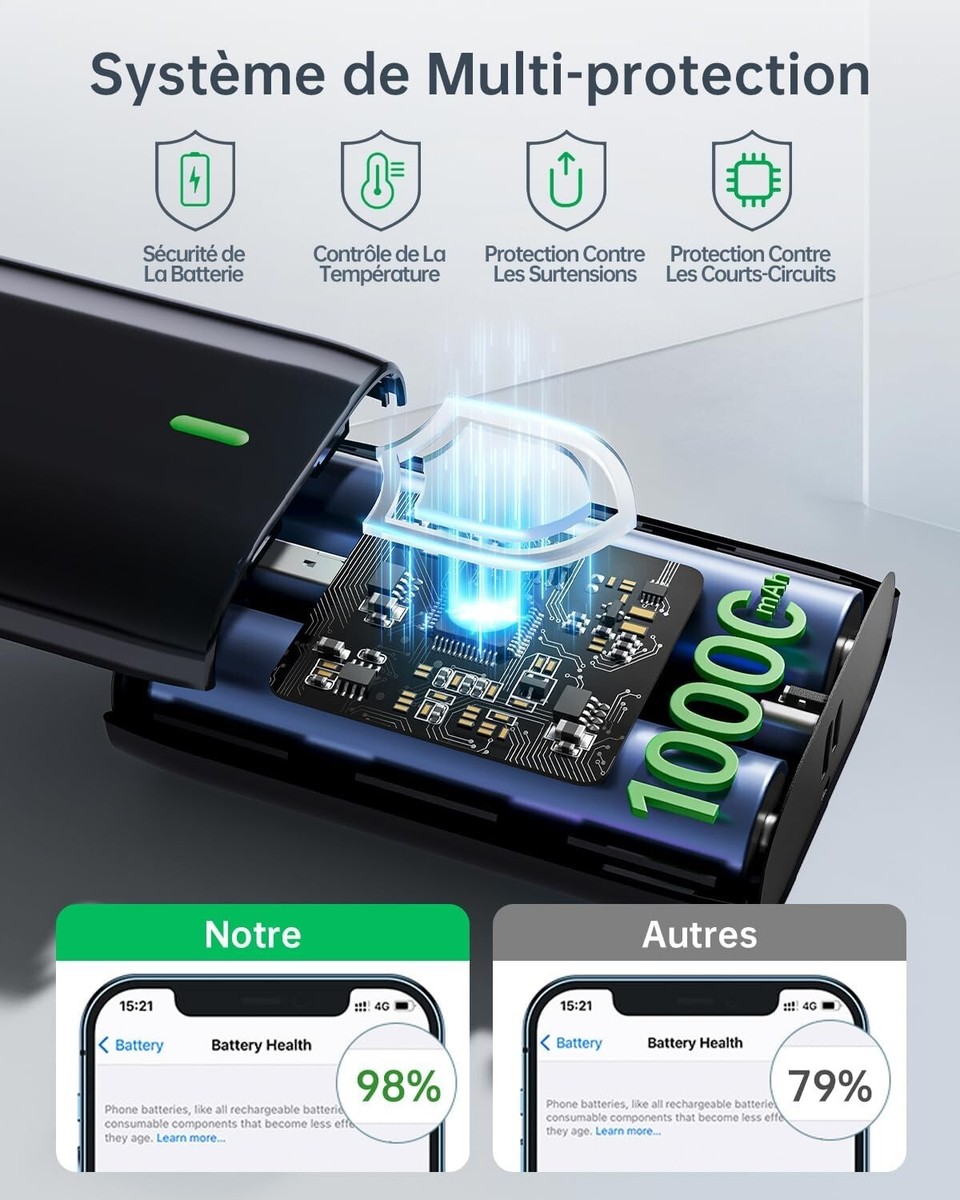 Coolreall Batterie Externe 10000mAh, Slim Power Bank Chargeur Portable Charge Rapide avec USB-C Sortie/Entrée (3.0A), 2 Ports USB Sortie & Micro USB Entrée, Compatible avec Samsung, iPhone, Xiaomi etc Marque pour protéger l'équipement et sa propre sécurité, il peut être utilisé de manière stable à long terme. Batterie Externe Belkin Batterie Externe 10000Mah Mince Et Légère Power Bank Usb C Charge Batterie Externe 20000mah 【Taille ultra - mince et performance robuste】 cette batterie externe mesure seulement 14., 3x6., 6x1., 5cm, pèse seulement 260g, a une charge de 10000mah, peut charger l'iPhone 14 environ 2,2 fois, Galaxy s21 environ 1,6 fois, airpods pro environ 16 fois, etc, l'power bank combine une puissance puissante avec une excellente portabilité, peut charger votre téléphone portable, tablette et autres appareils à tout moment lorsque vous voyagez, répond à la demande de plusieurs jours de plusieurs appareils, voyage en plein air, les déplacements quotidiens sont adaptés sans avoir à préparer de chargeur différent. 【Mise à niveau de l'affichage avec un design mince et léger】 la dernière mise à niveau d'un écran plus grand, affichage précis de la puissance restante (précision à 1%), adieu aux indications floues traditionnelles; Forme mince et légère, facile à transporter, facile à mettre dans votre sac à dos, poche, ne prend pas de place. Batterie d'alimentation portable: Batterie externe légère et de petite taille (9,35 * 6,35 * 2,5cm, 220g) Petite capacité légère mais élevée de 10000 mAh permettant de recharger le smartphone 3-4 fois (en fonction de la capacité de votre téléphone Lot de 2]Batterie Externe 10000mAh, Ultra Mince Compact Power Bank 2 En utilisant le noyau électrique de haute qualité, avec des mécanismes de protection multiples tels que la surcharge, la décharge excessive, le court - circuit, etc. 【Compatibilité étendue】 2025 nouvelle batterie portable améliorée avec 1 Port type - C prenant en charge la charge rapide d'entrée / sortie, 2 ports de sortie usb - a, peut répondre à trois appareils simultanément pour la charge simultanée, s'adapte parfaitement aux téléphones mobiles tels que la série iPhone, Galaxy, Huawei, xiaomi, etc, Ainsi qu'aux petits appareils tels que les airpods, les montres intelligentes, etc. 【Charge rapide et sortie stable】 cette powerbank tient une charge rapide 5V / 3a, ce qui augmente considérablement la vitesse de charge 2a par rapport à l'ancien modèle, réduit le temps d'attente, la sortie est stable et garantit une charge sûre et efficace de l'appareil.