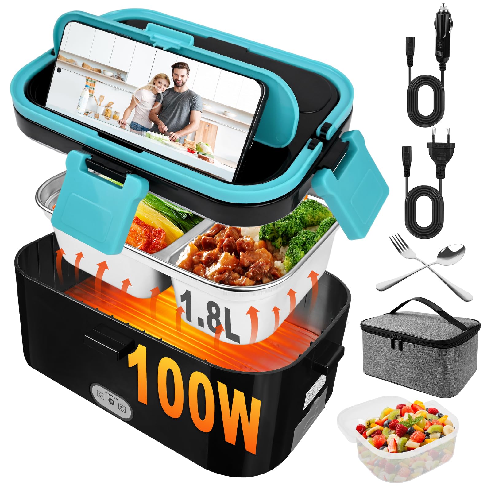 Gamelle Chauffante Lunch Box Chauffante Electrique, Nifogo 3 en 1 12V 24V 220V 1.5 L Boîte Chauffe Plat Voiture Gamelle Chauffante 1,8L Lunch Box Electrique 12V 24V 220V 3 En 1 Boite Chauffe Avec Sac Et Boite à Lunch Chauffante N'hésitez pas à nous contacter en cas de problème, nous promettons de répondre dans les 24 heures, s'efforcer de vous fournir la meilleure expérience utilisateur sur nos produits. 🍔【2025 Boîte à Lunch Améliorée】Notre boîte à lunch électrique utilise une alimentation améliorée de 100W pour le chauffage, une fois branchée, la boîte à lunch chauffante se réchauffe en 20 à 30 minutes, ce qui varie selon la saison. 🍝【3-IN-1 Voiture & Bureaux Double Usage】Dites adieu à la restauration rapide ! Gamelle Chauffant Chauffe Plat Voiture 220V 12V 24V en Acier Inoxydable Thermique Amovible Convient pour Voiture Camionet (BLEU). 29,89€29,89 🍝【Matériau de Qualité Alimentaire】Czoele Electric Heating Lunch Box est fait de plastique PP de qualité alimentaire et de récipient en acier inoxydable 304., Une fourchette supplémentaire en acier inoxydable est fournie. Boîte Chauffante Lunch Box 220v, Gamelle chauffante Lunch Box... Résoudre le problème d'oublier d'apporter une cuillère et une fourchette. Ce chauffage alimentaire est conçu avec une chaleur circulante pour garder vos aliments nutritifs et frais., Conception à double grille.