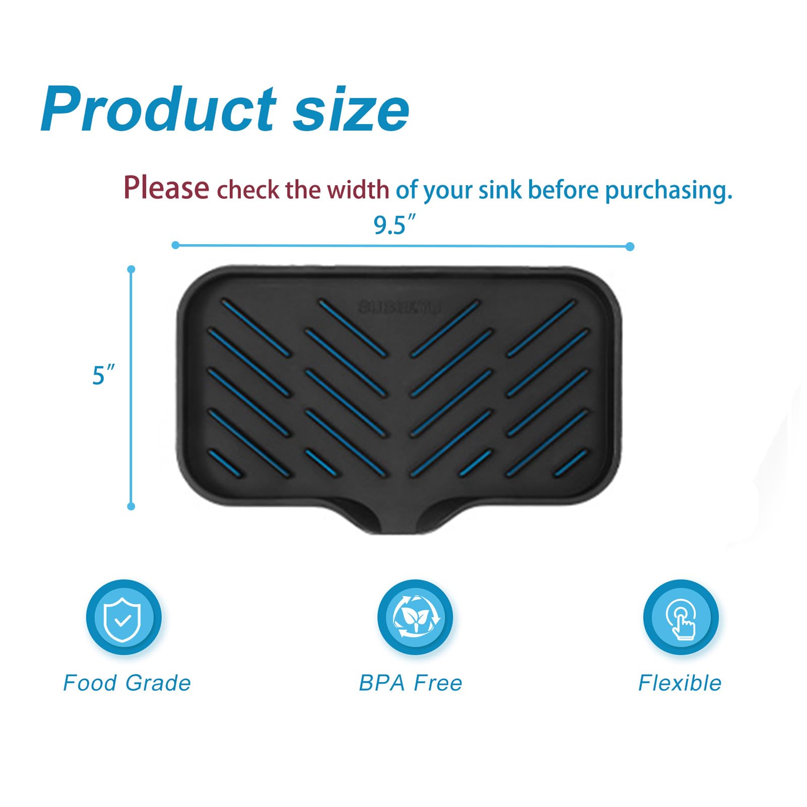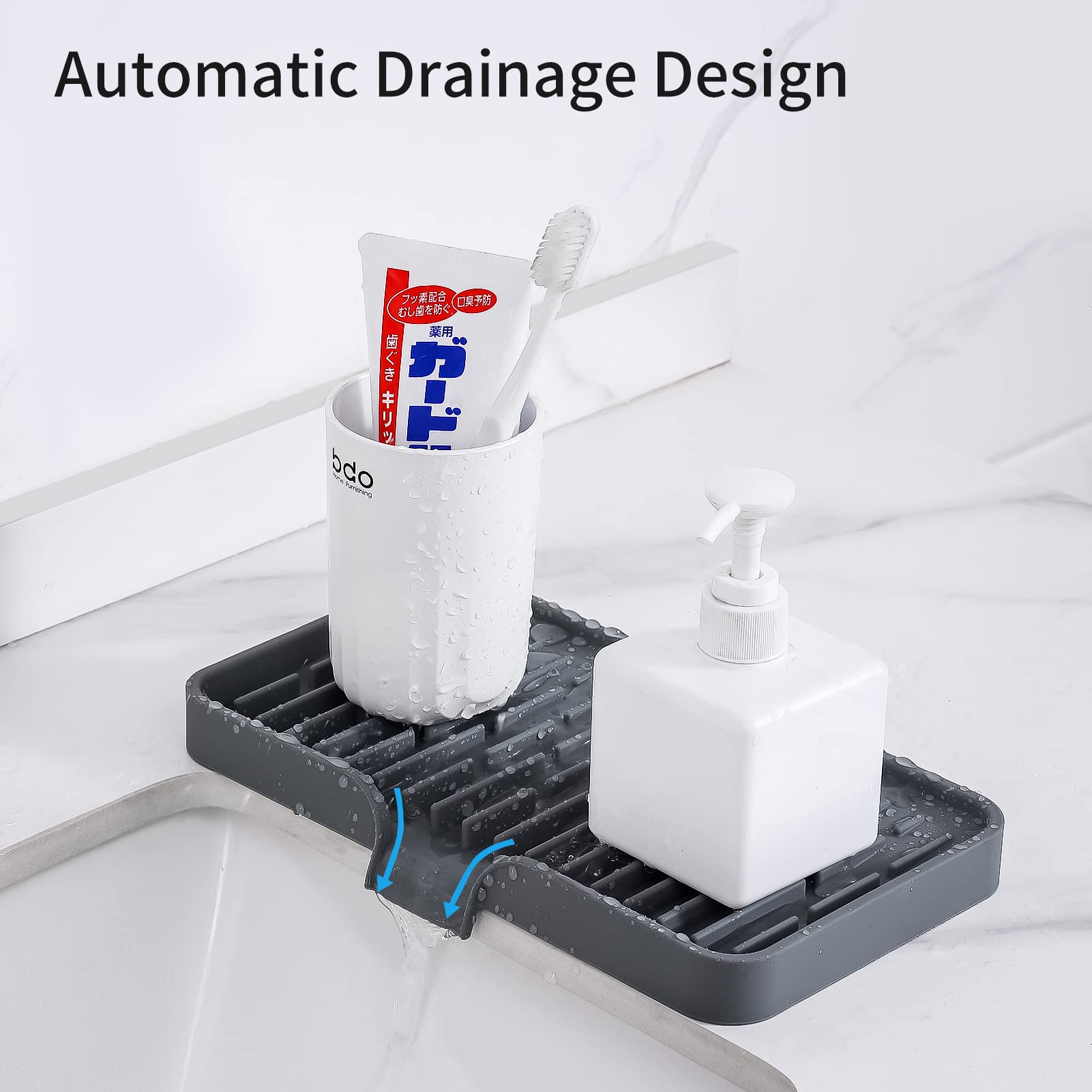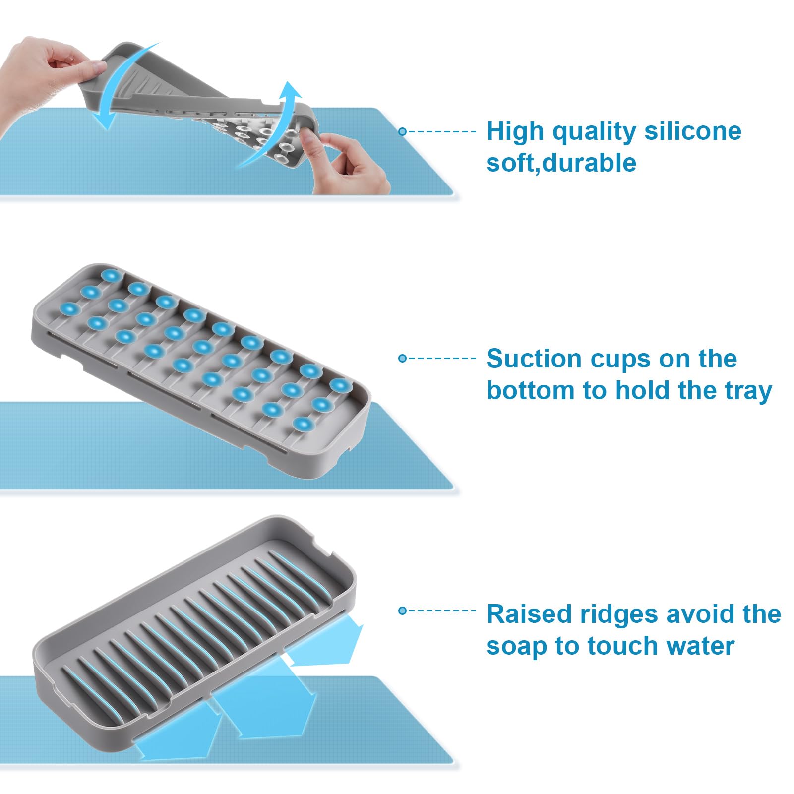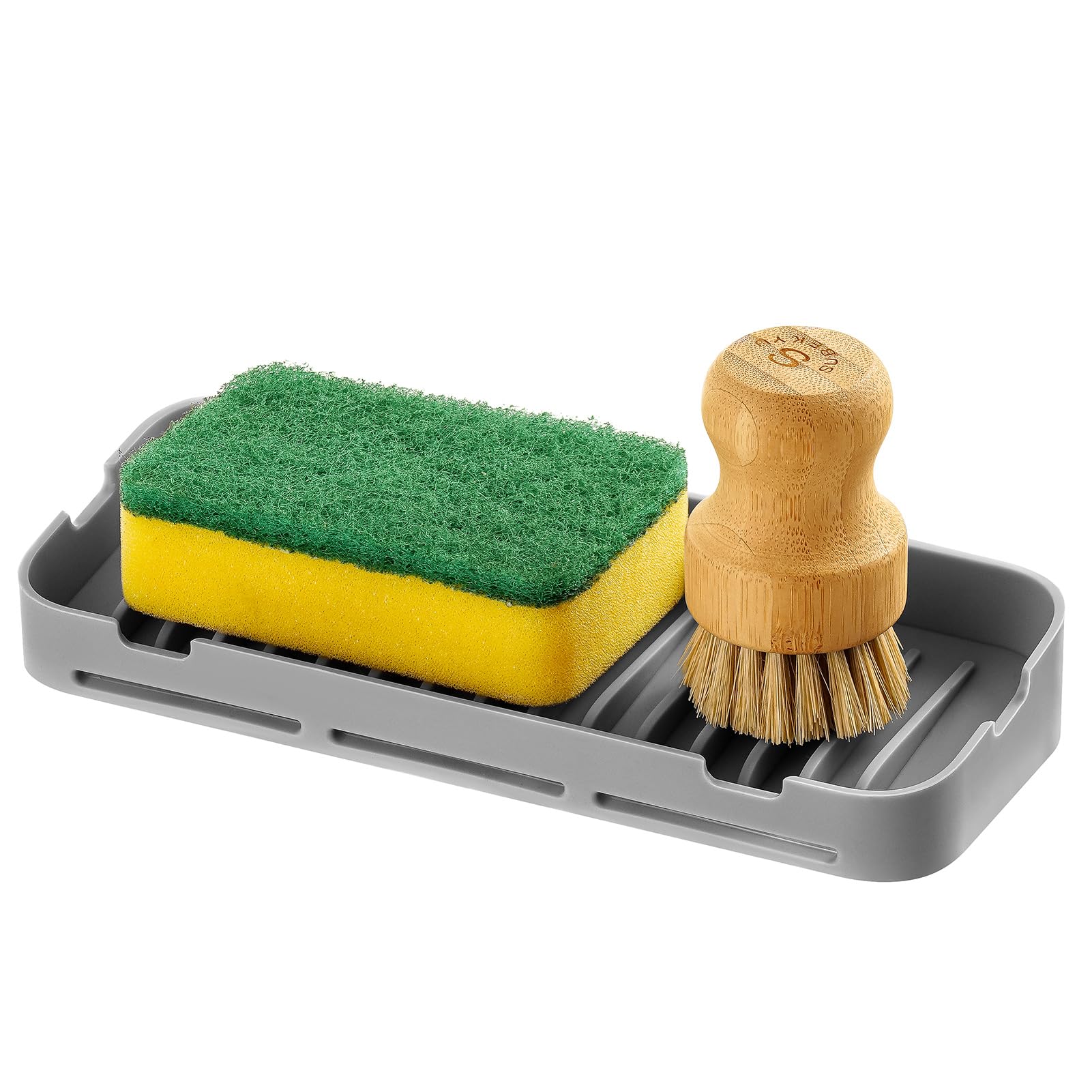 Lot de 2 plateaux de rangement pour évier de cuisine, support yeacher Plateau à Savon de Cuisine, Plateau d'Évier de Cuisine Porte-Éponge de Cuisine Auto-Drainant en Silicone Premium Porte-Savon pour Salle de Bain Comptoir de Cuisine Organisateur de Réservoir d'Évier Tailles pratiques : vous recevrez 2 plateaux de salle de bain en silicone de 30 x 12,7 cm et 19,8 x 9,9 cm, assurant suffisamment d'espace pour tous vos accessoires de salle de bain ou de cuisine. Parfait pour organiser vos articles en un seul endroit Matériau : fabriqué en silicone de qualité alimentaire, il résiste à des températures élevées jusqu'à 230 °C. Souple et durable, il est anti-chute et facile à nettoyer. Ce support de rangement pour évier de cuisine peut servir de trépied pour préparer du café, du chocolat chaud ou du thé