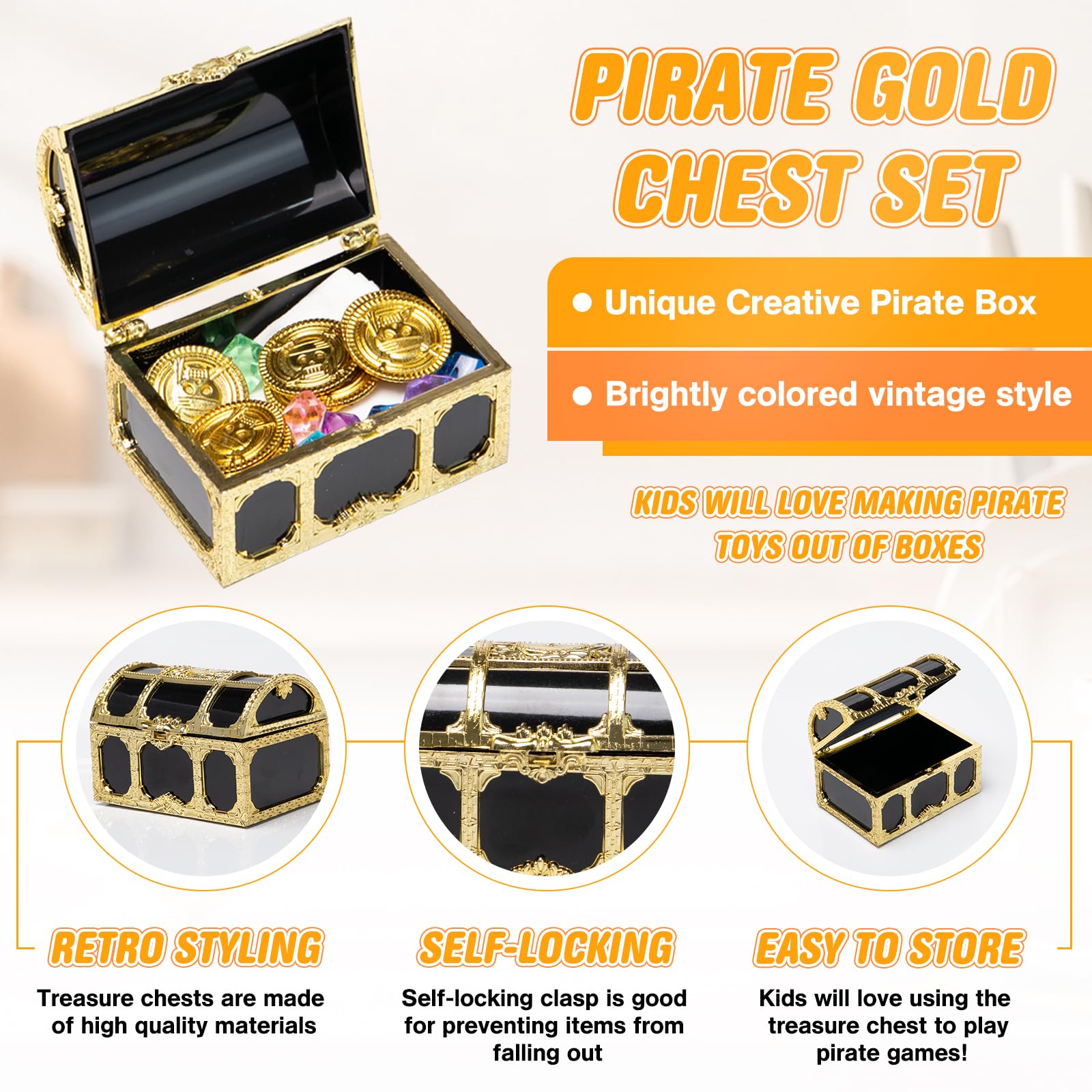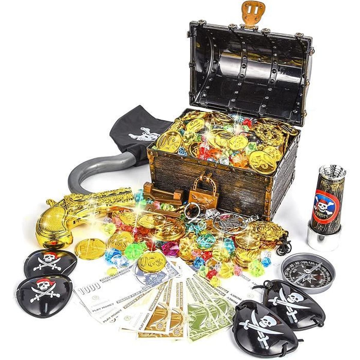 LOT DE 12 boîtes à trésors en plastique transparent : Coffret Coffre Au Tresor En Carton Neikafan 12 Piu00e8ces Mini Coffre Tru00e9sor Pirate Plastique,12 Pierre Precieuse Enfant Et 12 D'or Piu00e8ces De Monnaie Coffre Pirate Petit Pour Bonbons Tru00e9sor Pirate Pour Du00e9coration Pirate Cadeau Créatif : Le coffre au trésor de pirate est un cadeau amusant et excitant, qu'il s'agisse d'un cadeau pour des amis ou la famille, ou d'une collection de jouets pour vos propres enfants, c'est un choix de cadeau idéal Fonction : 1., Pirate Treasure a un design unique et créatif qui est parfait pour décorer les fêtes d'anniversaire des enfants et les slogans de pirates., 2., Vous pouvez transformer ces petits coffres à trésor en plastique en décorations de fête attrayantes avec de l'imagination, en quantité suffisante pour votre usage., 3., Ces coffres à trésor conviennent aux fêtes sur le thème des pirates, aux anniversaires, aux chasses au trésor, aux carnavals, aux jeux de rôle et autres. Jeu De Thème Pirate : Contient 12 coffres à trésor vintage + 30 pièces d'or, de riches accessoires pour créer instantanément un monde de pirates réaliste ! Largement utilisé] L'ensemble de décoration de Pirate Fête Boîte pour enfants contient 12 Trésor Pirate en Papier Sac Boîte, qui peuvent être utilisées comme décorations de fête ou remplies de bonbons, de chocolats, etc Les coffres à trésor sont dotés de serrures simulées, afin que les enfants puissent s'amuser à déverrouiller et à cacher le trésor, pour une créativité sans limite Tuto pour créer un coffre au trésor de prate en boîte d'oeufs | Coffre... Large Application : Le mini coffre à trésor peut non seulement être utilisé comme décoration pour une fête de pirates, mais aussi pour ranger les petits bijoux des enfants, les bonbons, les pièces de monnaie et d'autres petits objets. Plongez dans le monde des pirates, plein d'aventures et de surprises.