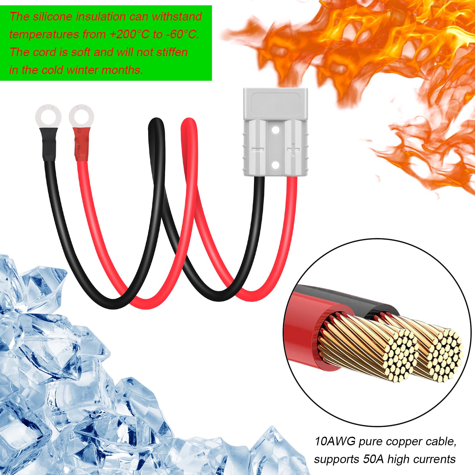 [Spécifications du câble] Les connecteurs HISports Anderson sont livrés avec une longueur de câble de 50 cm, courant nominal : 50 A, tension nominale : 600 V. [Spécifications] Connecteur de batterie Anderson 50 A 600 V avec câble en cuivre 10 AWG avec isolation en silicone, doux et résistant à la chaleur, ignifuge, anti-rayonnement, anti-vieillissement. [Largement utilisé] Le connecteur de batterie est utilisé pour connecter des chariots élévateurs, des véhicules électriques, des voitures, des caravanes, des treuils de remorque, des panneaux solaires et d'autres appareils électriques. HISports Connecteur de Batterie 50A 600V Les connecteurs sont en cuivre argenté, ce qui garantit une longue durée de vie résistante à l'oxydation. HISports Fiche de Batterie 50A, fiche de Connexion Rapide avec Protection Anti-poussière pour Voitures, caravanes, Camping-Cars, Motos et Bateaux (Set de 2, Rouge Connecteur Anderson 50A Connecteur Rapide De Batterie, Câbles De Prise 50 A | Connecteurs De De Prise Rapide De 50 A - Connecteurs De Batterie Quick 50 A Pour Chariots élévateurs électriques, Voiturettes De Golf Et Connecteur Cuivre Argenté CONNEXION SIMPLE ET rapide 10 x connecteur de tuyau avec joint torique...