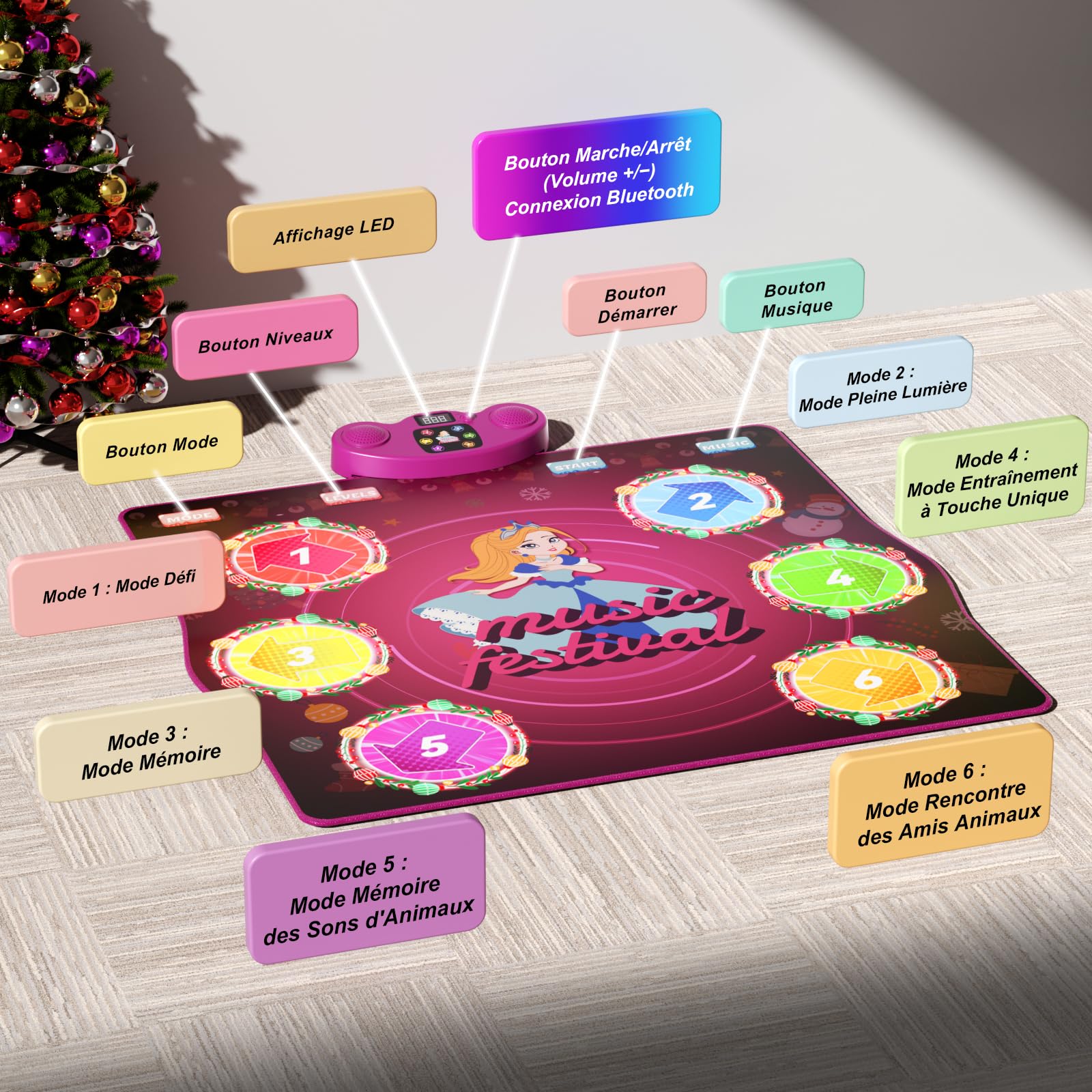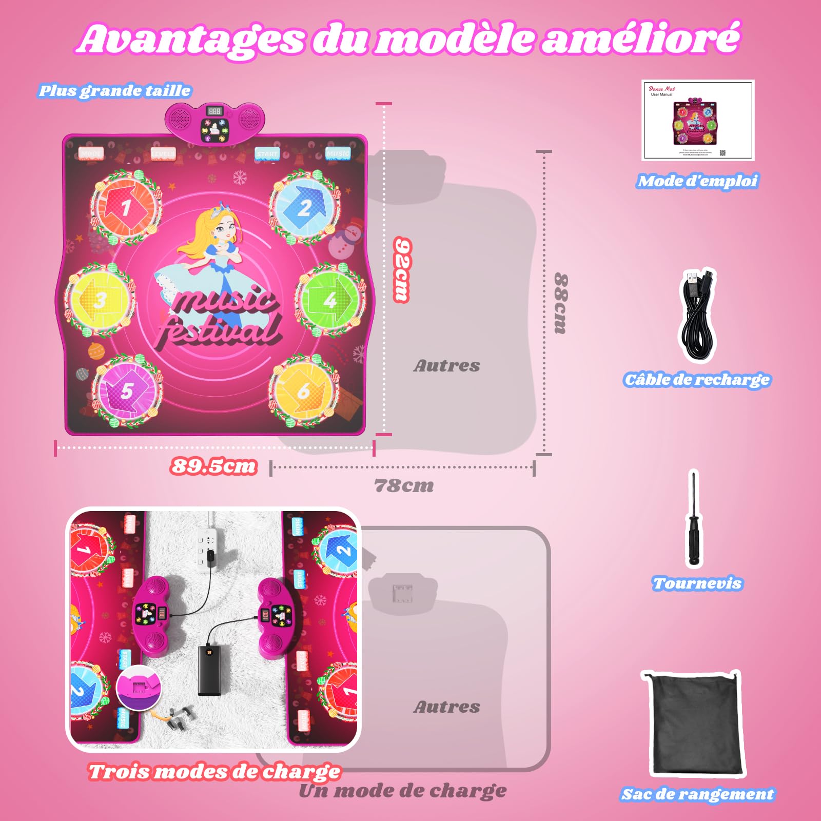 C'est également un choix de cadeau idéal pour les anniversaires, Noël, la fête des enfants, la journée scolaire et d'autres festivals pour les filles de 3, 4, 5, 6, 7, 8, 9 ans et plus, permettant aux enfants de garder leur vitalité tout en jouant à des jeux Parfait pour le plaisir de la danse et l'entraînement de coordination. Tapis De Danse Pour Enfants De 3, 4, 5, 6, 7, 8, 9, 10, 11 Et 12 Ans Tapis De Jeu Pour Filles De 3 A 12 Ans Cadeaux De Noel Connecteur De Type C Pour Une Alimentation Stable Musique Bluetooth 6 M 91869866 【Sûr et durable】Matériau non toxique de haute qualité avec fond antidérapant – Stable et sûr lors de la danse. Cadeau idéal et portable : facile à plier, fonctionne avec des piles (4 x AA, piles non incluses), avec une charge complète d'environ 6 heures de jeu. Convient pour une utilisation en intérieur et en extérieur. Cadeau idéal et portable : facile à plier, fonctionne avec des piles (4 x AA, piles non incluses), avec une charge complète d'environ 6 heures de jeu. Convient pour une utilisation en intérieur et en extérieur Tapis de danse pour enfants - ZGEER - Multifonctionnel - Blanc Cinq modes de jeu passionnants : offre des possibilités de jeu variées : mode libre, deux modes de rythme avec trois niveaux de difficulté, mode mémoire et batterie électronique. Les enfants dansent sur leurs propres chansons et élargissent ainsi la diversité de jeu. Imperméable et facile à nettoyer, idéal pour les enfants à partir de 3 ans.