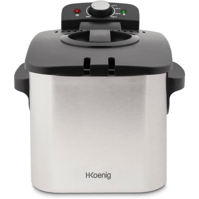 2 thermostats réglables séparément de 0 à 190 °C avec bouton rotatif assurent une utilisation super facile. 2 x 3 litres de réservoir d'huile maximum (graduation min. Voyants de contrôle vert/jaune - S'éteint dès que la température est atteinte - 4 pieds antidérapants Le couvercle a une découpe supplémentaire pour les anses du panier et un filtre anti-odeurs amovible., Facile à utiliser. Friteuse à huile de 2,5 litres avec bac anti-adhésif, doté d'un panier Vous pouvez démonter complètement la friteuse et nettoyer toutes les pièces (à l'exception du thermostat) rapidement et facilement au lave-vaisselle. Le couvercle de la friteuse est muni d'une poignée et la fenêtre transparente vous permet de garder un œil sur vos aliments frits. TT-DF2 - Friteuse Deep Fryer. Que ce soit pour un usage domestique ou lors de fêtes, la friteuse offre suffisamment d'espace Toujours en main et en un clin d'œil. iteuse double / 2x 3L / avec réservoir d'huile amovible (lavable au lave-vaisselle) / température : 0-190°C/noir Votre imagination ne connaît pas de limites. Zone froide : les miettes s'accumulent sous la spirale chauffante à 85 °C et ne sont pas frites à nouveau – un goût toujours frais et une plus longue durée de vie de l'huile agicplux Air fryer chaud 5,5L XXL, Friteuse sans huile 1500W avec 13... Devenez un professionnel de la friteuse dans votre cuisine avec cette friteuse. Chacun des deux paniers en acier inoxydable peut contenir jusqu'à 1 kg de frites, les poignées sont isolées thermiquement et les paniers peuvent être facilement verrouillés dans une position d'égouttement surélevée. Fonctionne sur prise 220-240 V. Vous pouvez par exemple faire frire du poisson et des frites en même temps. Friteuse Professionnelle Maison Friteuse Double - INOX - 2x3L - 3300W - Température Jusqu'à 190°C - 2 Paniers à Frire Friteuse Double 2x3l Le corps de la friteuse est fabriqué en acier inoxydable 430 noir brossé résistant à la chaleur avec 2 poignées latérales. 2 récipients à huile amovibles : nettoyage facile au lave-vaisselle et remplissage facile Friteuse double zone froide noire de TurboTronic by Zline. Dimensions : 41 x 41 x 22 cm, câble de 90 cm avec compartiment pour câble