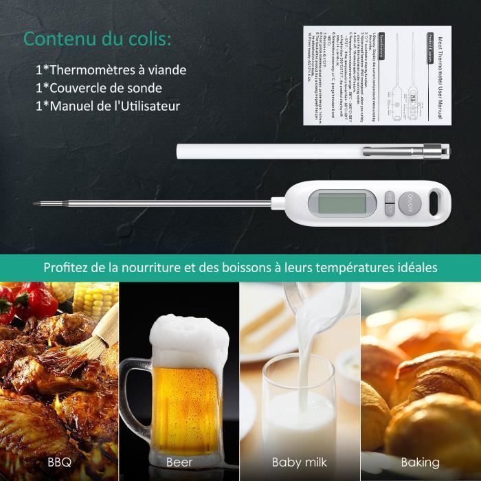 Taille de l'emballage : vous recevrez 1 thermomètre alimentaire noir avec une longueur de sonde de 5,8 pouces et une longueur de poignée de 3,54 pouces. Matériau : cette sonde de thermomètre alimentaire est fabriquée en acier inoxydable, avec affichage à cristaux liquides, structure en forme de stylo, haute précision, mesure rapide de la température et haute stabilité. Haute précision : thermomètre alimentaire professionnel en acier inoxydable, sonde ultra-fine, puce d'affichage rapide de haute précision, temps de réponse ultra-rapide et précision de ± 1 °C, ce qui peut éviter les aliments crus ou trop cuits et garantir la meilleure saveur. Thrmomètr d cuisin à sond numériqu Idéal pour viand/vin/confitur t autrs alimnts noir au millur prix Largement utilisé : le thermomètre pour aliments peut non seulement mesurer la température des aliments, mais également mesurer l'eau du bain du bébé, les préparations pour nourrissons, la friture et les grillades. Nutabevr Thermometre Cuisine avec Écran LCD Thermomètre Numérique Digital avec Sonde Longue Haute Précision,Lecture instantané Thermomètre Cuisson,pour BBQ,Huile,Viande,Nouriture,Lait,Vin,Eau Chaude Thermomètre de Cuisine avec Écran LCD Thermomètre Numérique avec Sonde Haute Précision Longue, Lecture Instantanée Thermomètre de Cuisson, pour Barbecue, Huile, Viande, Nourriture, Lait, Vin, Eau Chaude Achat en ligne pour Cuisine et Maison un vaste choix de Thermomètres à viande, Thermomètres pour cuisson au four, Thermomètres spécialisés de plus à prix bas tous les jours