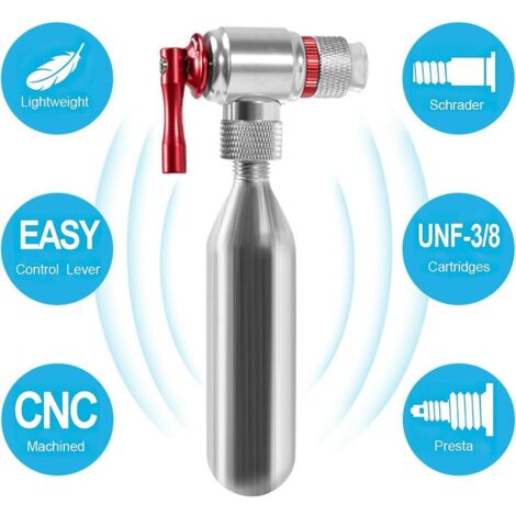REMARQUE: Tête de l'inflatrice conçue pour toutes les cartouches CO2 de taille filetée UNF3 / 8., ., Cartouches de CO2 non incluses tête de pompe à vélo QWORK® Pompe à vélo CO2, pour valves Presta & Schrader, Mini Pompe à La tête de gonflage a une valve de contrôle fiable et simple pour un réglage précis, facile à utiliser. Se gonfle en quelques secondes et vous permet de rouler à nouveau rapidement Matériel: La tête de pompe à vélo de l'inflator de CO2 est fabriquée à partir de tête de pompe à vélo Alloyco2 de la tête de pompe à vélo ALLOYCO2 STRONG et Inflation fiable des pneus - gonflez un pneu en quelques secondes avec notre système de vanne., ., L'opération de levier de contrôle régule la vitesse de la libération de CO2 pour l'inflation avec précision., ., Fonctionnalités CO2 Bike Pump Head -Color: Silver., ., -Material: alliage d'aluminium., ., -Size: 3., 54x0., 98x0., 98 poudain., ., Poids brut: environ 50g Remarque: 1., N'utilisez pas la cartouche de CO2 vers le corps et éloignez-le des enfants., ., 2., Veuillez l'utiliser avec une manche pour éviter vos doigts en gel., ., 3., Applicable pour la cartouche filetée uniquement., ., 4., La cartouche doit être utilisée dès que possible dans les 10 minutes après l'ouverture., ., 5., No contiennent des cartouches CO2., ., Package incluant 1 * Tête du gonflage CO2 Mini Pompe à vélo avec manomètre pour valves Presta et Schrader, Pompe... Suite: la tête de pompe à vélo CO2 s'adapte à la tête de la pompe à vélos de tête de la tête de la tête de la tête de tête Description Cette tête de pompe à vélo est petite, compacte et légère. Tete Pompe Aluminium Portable Vélo Tête De Pompe Co2 Gonfleur Tête Pour Pneus Vélo Presta Et Schrader Tete Gonflage Co2 Velo