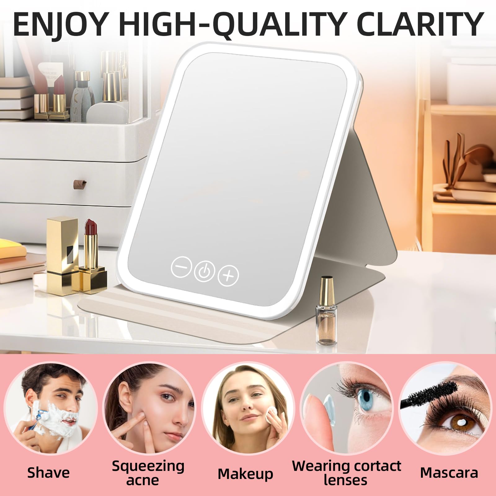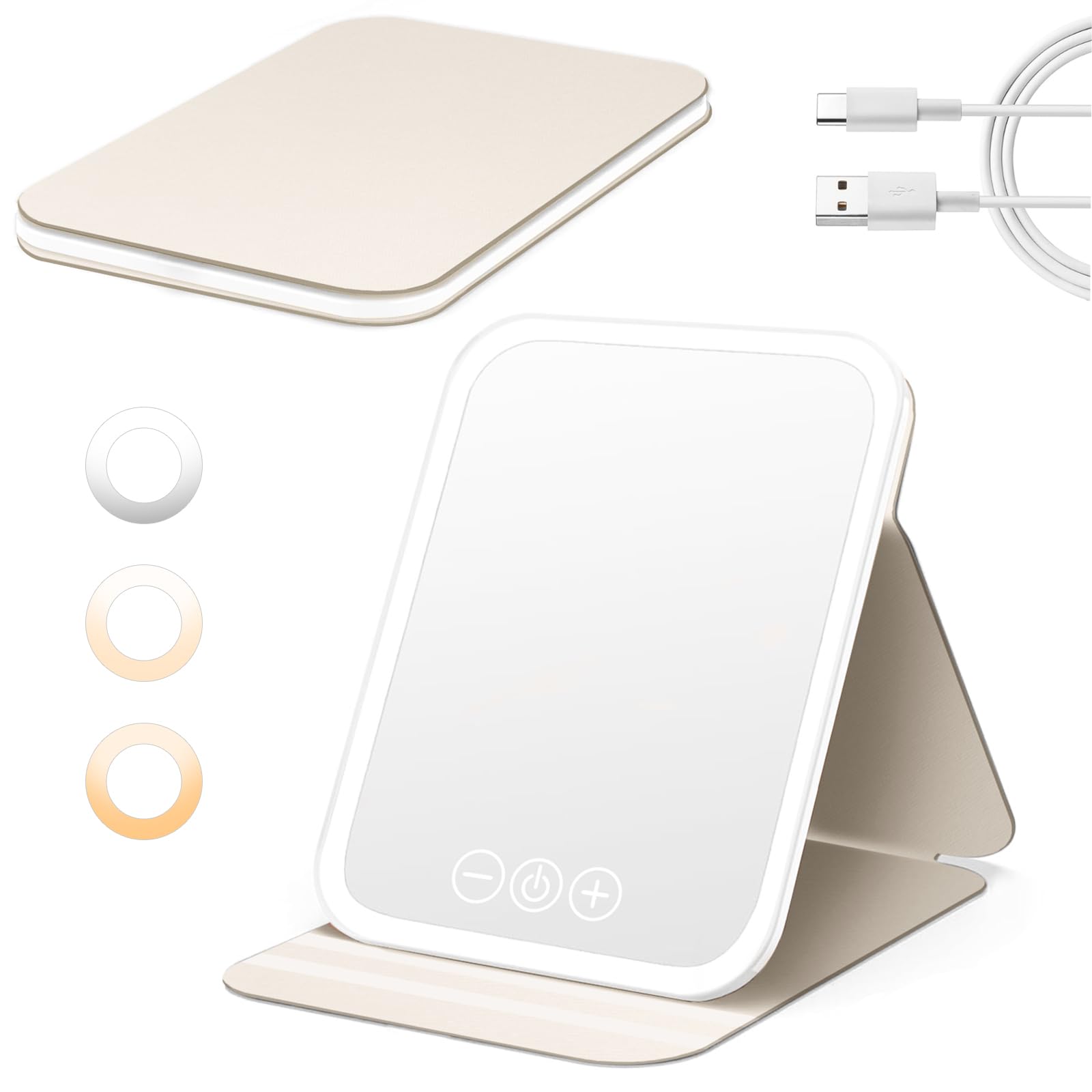 ✨【Design Portable】Ce miroir de maquillage ultra-fin et portable offre un design compact idéal pour les voyages, ses dimensions sont de 23 x 17,5 cm, son épaisseur repliée est seulement de 1,6 cm, offrant un champ de vision élargi pour un maquillage précis et facile, léger et compact, il se glisse facilement dans un sac à main, une trousse de maquillage ou une valise, utilisable partout et à tout moment, c'est le choix idéal pour la maison, les déplacements ou les voyages. 💡【Trois Modes Lumineux】Ce miroir de maquillage LED propose trois modes d'éclairage, lumière chaude, lumière froide et lumière naturelle, assurant une luminosité claire et uniforme adaptée à tous vos besoins de maquillage, la lumière LED est douce et brillante, non éblouissante, éclaire même les zones les plus sombres, vous aidant à créer un maquillage parfait en toute simplicité. 🔋【Rechargeable】Doté d'une batterie lithium-ion rechargeable intégrée de 1000 mAh, après une charge complète, il fonctionne pendant 1 à 3 heures sans interruption, évitant les recharges fréquentes, prend en charge la recharge USB via power bank, ordinateur ou autres appareils, pratique et rapide. Fancii Miroir Maquillage Lumineux Pliable Rechargeable et Miroir 🎁【Cadeau Idéal】Ce miroir multifonction à affichage HD répond parfaitement aux besoins de maquillage en voyage, c'est le cadeau idéal pour Noël, les anniversaires, la Saint-Valentin, la Fête des Mères et autres occasions, offrant à vos proches quelque chose d'utile et de beau lors des jours spéciaux. Auxmir Miroir de courtoisie, miroir grossissant 1X/30X avec lumière, hauteur réglable de 22,9 cm, miroir de maquillage double face, miroir lumineux rechargeable 3000 mAh avec 3 modes de couleur et Miroir Coiffeuse Led Miroir De Maquillage Lumineux Miroir De Voyage Portable USB Miroir Lumineux Maquillage Il est ultra léger, ultra fin et pratique, vous pouvez donc le ranger facilement dans votre sac à main, votre trousse de maquillage ou votre trousse de voyage
