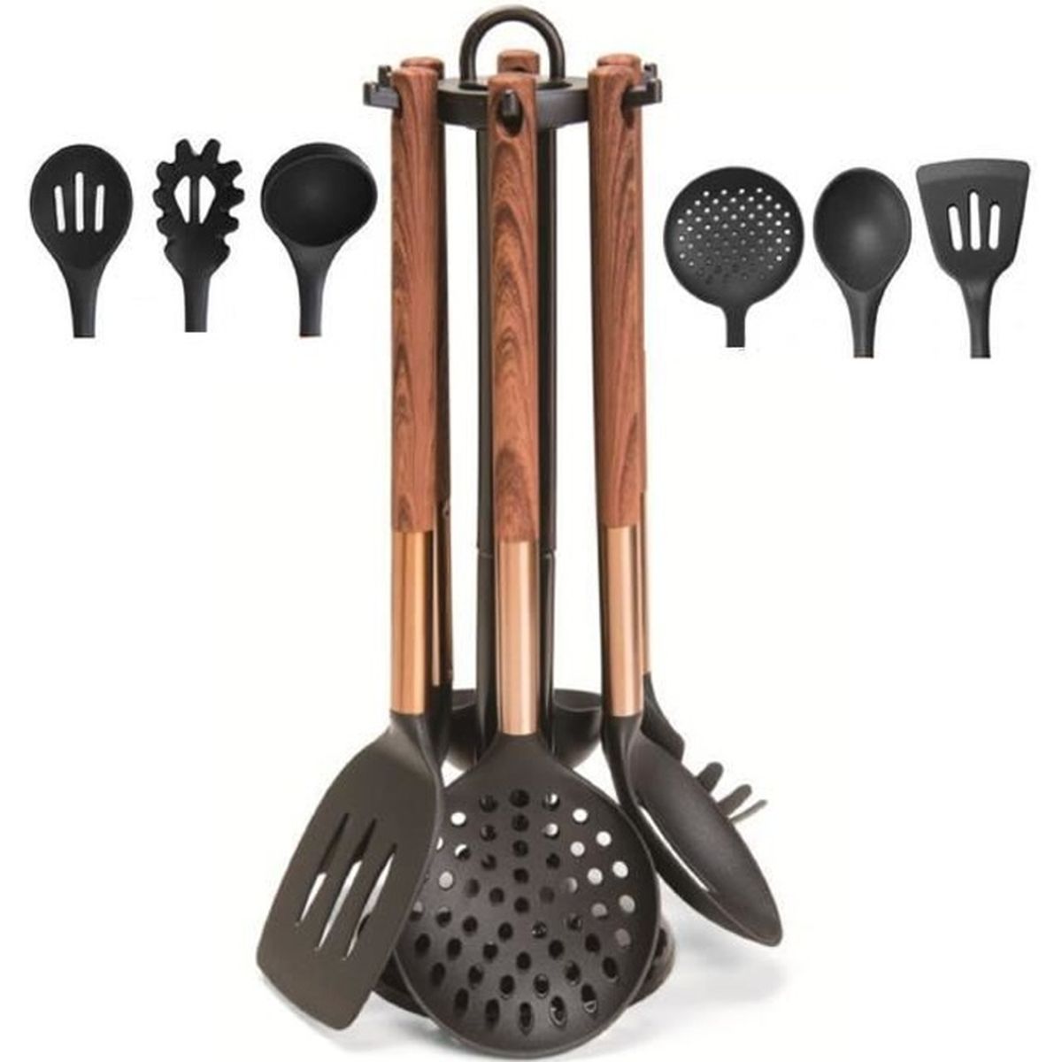 POIGNEE ANTIDERAPANTE - TROU D'ACCROCHAGE - TETE SURELEVEE USTENSILES DE CUISINE AVEC ERGOT POUR éviter que les ustensiles de cuisine ne touchent le plan de travail Ensemble de 7 pièces, comprenant : 1 porte rotative LOUCHE SPAGHETTIS SPATCH SPATULE SPATULE SPATULE MANCHE ANTIDÉRAPANT MANCHE TÊTE VERS LE HAUT LOUCHE - CUILLERE A SPAGHETTIS - ECUMOIRE - CUILLERE - SPATULE - SPATULE A TROUS Ustensiles Avec Ergot Anti-plans Ensemble D'ustensiles De Cuisine En Nylon, Lot De 6 Pièces, Meilleures Ventes, P Manche Antidérapant Ergot évite Contact Plan Set d'ustensiles de cuisine, 7 pièces Swetfela 12-Piece Kitchen Utensil Set, Wooden Handle Silicone Kitchen Utensils, Heat Resistant Non-Stick Coating Kitchen Utensils Set, Healthy and Safe Cooking Cutlery Set, Dishwasher Safe, Black Küchenhelfer Set 7 tlg. mit Halterung Küchenbesteck Kochbesteck Küchenutensilien