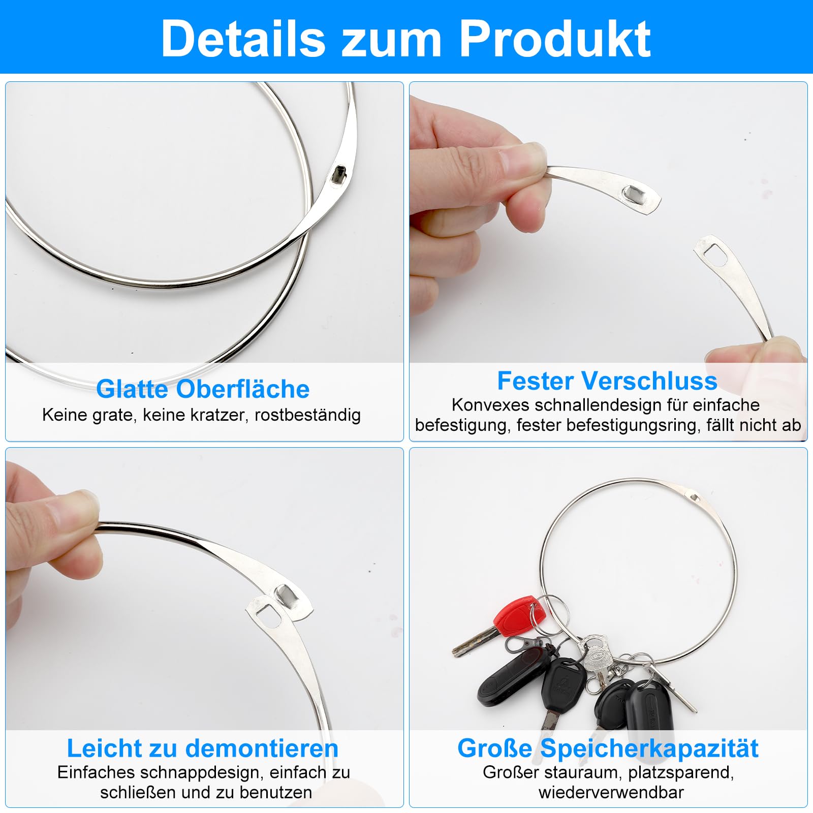 Parcourez notre sélection de grand anneau porte clés : vous y trouverez les meilleures pièces uniques ou personnalisées de nos boutiques Que vous portiez la bague de clés grande dans votre poche ou accrochée à votre poche, vous ne devez pas vous soucier que vos objets soient grattés ou endommagés. Anneaux Porte Clés Namalu Grand Anneau En Métal Polyvalent Anneaux De Reliure Anneaux Porte- Clés De Gardien 12 Cm 15 Cm 18 Cm Anneau Articulé Pour Écharpe Sac Ceinture T-Shirt Gilet D'Entraînement Album DIY(120 Mm,2 Ring Métal épais 4mm La bague en métal est composée de fer métallique robuste, brillant et durable, est épaisse de 4 mm, a une haute résistance et la surface métallique est lisse, pour protéger vos vêtements et votre artisanat bricolage contre les dommages., Propriétés 1., Matériel métallique de haute qualité, robuste et durable, résistant à la rouille et à la corrosion, pas facile à déformer ou à casser., 2., 150mm grand diamètre, 4., 0mm épaisse conception, peut lier plus de documents, sans frottement envelopper., 3., Structure de fermeture, facile à ouvrir et à fermer, fermer fermement, empêcher les documents de tomber, sûr et confortable., 4., Design polyvalent, adapté pour l'organisation de documents, feuilles à feuille, porte-clés, livres à motifs, matériel didactique, bricolage fait à la main et ainsi de suite., 5., Compact et portable, facile à ranger, ne prend pas de place, facile à transporter pour organiser les choses, améliorer l'efficacité du travail et de la vie. En comparaison avec le stockage en boîtes, vous pouvez visualiser intuitivement les articles que vous portez avec la bague modifiée. 【Weithin Verwendet[modifier | modifier le code】La bague en métal est adaptée pour les bureaux, les écoles, les ménages et les commerces et peut être utilisée pour lier des documents, des feuilles partielles, des porte-clés, des livres de modèles, des projets d'artisanat, etc. Extra grande taille]Avec un diamètre de 15 cm, ce porte-clés offre une grande place suffisante pour toutes ses clés et autres objets. Qu'il s'agisse de clés de maison, de clés d'auto ou de clés de bureau, bagues de clés grandes peuvent accueillir sans problème 4 Pièces Grand Anneau en Métal, 150 mm Polyvalent Anneaux de 【Surface lisse】La surface de cette bague de clés polyvalente est spécialement traitée et très lisse, ce qui empêche non seulement les rayures sur leurs vêtements, mais aussi protéger leurs travaux à domicile contre les dommages. 【Économisez du temps et de la place】Par rapport à la bague à vêtements, la bague est compacte et peut stocker plusieurs articles simultanément, ce qui économise de la place. 【Extra grande taille】Avec un diamètre de 15 cm, ce porte-clés offre une grande place suffisante pour toutes ses clés et autres objets.