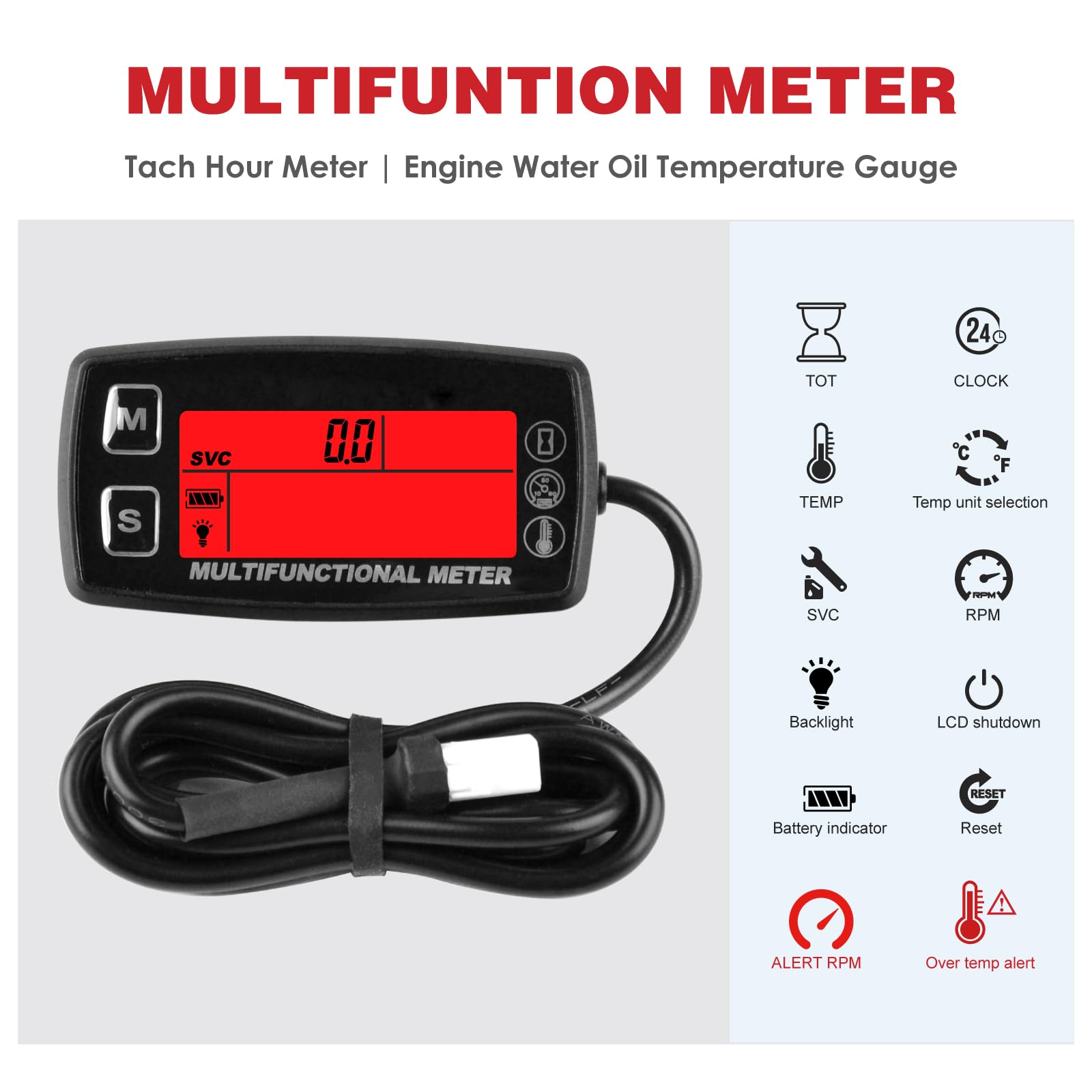 RileyFine Compteur horaire numérique auto-alimenté - Minuteur d'entretien - Étanche IP68 - Jauge de tr/min pour tondeuse à gazon, tracteur, moto, jetski, tronçonneuse, motocross, générateur Indice d'étanchéité IP68., Prévenir les chocs forts entre un transport et l'autre Runleader Compteur De Tache/heure Numérique Auto-alimenté - Intervalle D'entretien - Alerte RPM Pour Lequitation Le Tracteur Le Generateur Le Compresseur Le Moteur Hors Bord Le Jetski Les Tronconneuses Tout Terrain Les Scooters RQ-HM019R est un compteur de tours numérique LCD qui contient des fonctions de surveillance des heures, de suivi RPM, de rappel du service d'entretien SVC. changement d'huile, soupapes, réglages, bougies, commande de piles, etc. Installation facile : adhésif ou vissable ; un design de connexion du câble pour la détection du signal du moteur, assurez-vous que le câble est serré et sûr ; aucune connexion d'alimentation externe n'est nécessaire Compteur d'heures d'accumulation de temps de fonctionnement total après avoir détecté le signal de vibration de la machine. Utilisez ce compteur d'heures pour garder une trace du nombre total d'heures d'utilisation de la machine BEL-7423055036573-Compteur de vitesse étanche Compteur de Vitesse Numérique pour Moto, Compteur Résistance à l'eau : 100 % époxy mastic peut être tenu à l'écart de l'humidité ou de l'humidité. RPM TACHOMETER : Display the engine real-time RPM and Max RPM since engine started to adjust the idle speed; RPM & MAX RPM range: 0 to 25,000 tr/min. Application : le compteur de tours du moteur Samll suit le nombre de tours du moteur et le temps de fonctionnement pour tous les types de moteurs à essence, y compris le moteur 1P1R, 1P2R, 2P1R, 3P1R, 3P2R, 4P1R, 5P2R, 6P1R, 8P1R.