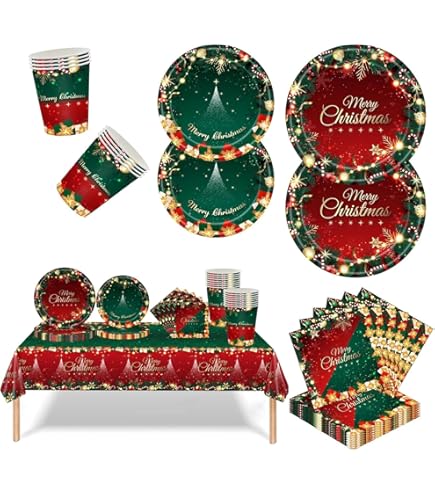 [Facile à utiliser] Ces couverts de fête en papier épais sont suffisamment solides pour contenir une assiette pleine de nourriture et n'ont pas besoin d'être nettoyés, il suffit de les jeter sans aucune pollution environnementale Ensemble de vaisselle de No l 25 assiettes plates de 9 pouces, 25 assiettes salade de 7 pouces, 25 tasses de 270 ml, 25 serviettes de 16,5 cm, tout le n cessaire pour le d ner de f te de No l inclus Profitez des vacances en famille et entre amis ! [Taille] Gobelet en papier : 270 ml, assiette plate : 23 cm, assiette à salade : 18 cm, serviettes : 16 cm x 16 cm, couteau, fourchette et cuillère réutilisables : 17 cm, peuvent répondre aux besoins de dîner de 24 invités pour Noël adapté aux fêtes de Noël, aux fêtes du pays des merveilles d'hiver, aux fêtes de famille sur le thème de l'hiver, etc. [Applicable] Arbre de Noël élégant et unique et neige blanche conçu et imprimé avec divers éléments de Noël : bonbons, cloches et nœuds, etc. - 24 pièces de chaque type, peuvent répondre aux besoins de 24 invités, apporteront une atmosphère de joyeux Noël à la maison. 168 Pièces Ensemble D'assiettes en Papier Jetables [Haute qualité] Fabriqué en papier de qualité alimentaire, 100 % sans danger pour les aliments, non toxique et sans BPA, sûr à utiliser, ne se déchire pas et ne se casse pas, biodégradable, parfait pour les fêtes de Noël respectueuses de l'environnement - L'assiette en carton n'a pas besoin d'être nettoyée, après la fête, jetez-la simplement sans aucune contamination. - Tous les articles sont fabriqués à partir de papier 100 % recyclable et de haute qualité. 168 Pièces Ensemble D'Assiettes En Papier Jetables Vert,Vaisselle De... Ensemble Décoration Table Noël KAHEIGN 100 Pièces Vaisselle En Papier De Fête De Noël | WhichOne Nappe Jetable Spécification : Matériau : papier Papier tasse : 270 ml Assiette à dîner : 23 cm Assiette à salade : 18 cm Serviettes : 16 x 16 cm Couteau, fourchette et cuillère réutilisables : 17 cm Conseils : - En raison des différentes méthodes de mesure manuelle, des paramètres d'éclairage et d'écran, veuillez prévoir une petite marge d'erreur.