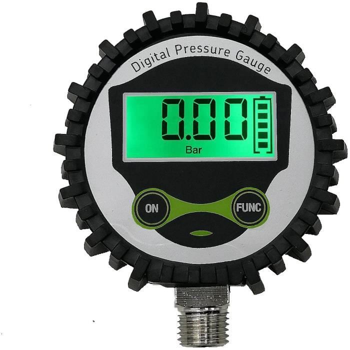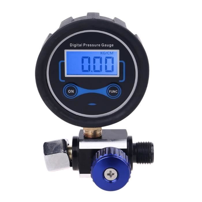 Manomètre Numérique, manomètre électronique Accessoire Pistolet à Peinture Manomètre Numérique Type E2 - Plage De Pression -1...40 Bar - Précision Manomètre Digital Pistolet Peinture L'écran LCD peut afficher les données de mesure intuitivement et clairement. Manomètre numérique, régulateur précis 1/4 NPT avec jauge numérique, jusqu'à 145 psi, régulateur de pression d'air pour pistolets à peinture Caractéristiques : Matériaux ABS et métalliques, résistance aux chocs, résistance à l'usure et longue durée de vie. Entrée et sortie 1/4, montage et démontage rapides et faciles. Qualité supérieure: le régulateur de pression d'air est fait de métal et de plastique qui est et compact, il peut prolonger la durée de vie du produit L'écran LCD peut afficher les données de mesure intuitivement et clairement., Caractéristiques : ABS. Manomètre Numérique Universel Précision† Tous les Montants indiqués Dans EUR Notez: Livré complet avec protection en caoutchouc, 2 piles « AA » et manuel d'utilisation. Un certificat d'étalonnage est disponible pour les modèles avec raccord G1/4 et 1/4NPT jusqu'à 700 bar (10,000 psi). Contacter notre service commercial pour le prix et délai. Exemple de commande: (1) DPGM8001-40... Remarque : Les mesures étant prises à la main, les tailles indiquées peuvent varier de 1 mm. Simple à utiliser, bouton de fonctionnement, et le bouton de réglage est facile à contrôler.