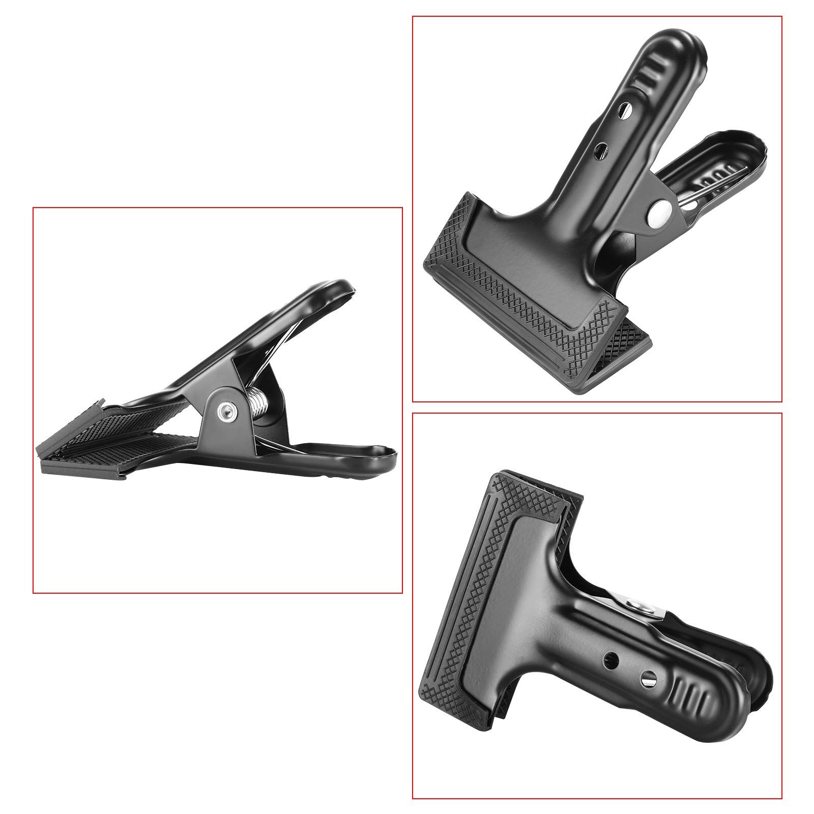 La pince de fond Caruba Large vous permet de suspendre votre toile de fond, votre écran de réflexion ou d'autres accessoires de studio avec une grande facilité Convient pour fixer du papier, de la toile et de la mousseline au système de support de fond. Pinces Fond Studio Lot De 4 Pinces Pour Toile De Fond : Pinces Robustes Pour Toile Pinces Studio Photo Caractéristiques : Couleur : noir. Construction en métal robuste, durable et robuste, longue durée de vie. Avec coussinets en caoutchouc pour garder la toile de fond plus sûre et sans dommages. Leur conception ergonomique permet une manipulation aisée des réglages rapides, ce qui en fait un accessoire indispensable pour les photographes.Dotées d'un mécanisme à ressort robuste, ces pinces pour toile de fond assurent une prise ferme sur divers matériaux, comme le tissu le papier Kit De Supports De Miroir En Métal, Pinces De Miroir Avec Vis Coussinets En Caoutchouc Crochets De Miroir Pinces De Miroir En Metal Paquet De 8 92381009 Poids de l'article : 106 g (une pince)., Contenu : 4 pinces Mesure 10,8 cm de long, 8 cm de large, et max. Taille de l'article : 10,8 x 8 cm (une pince).