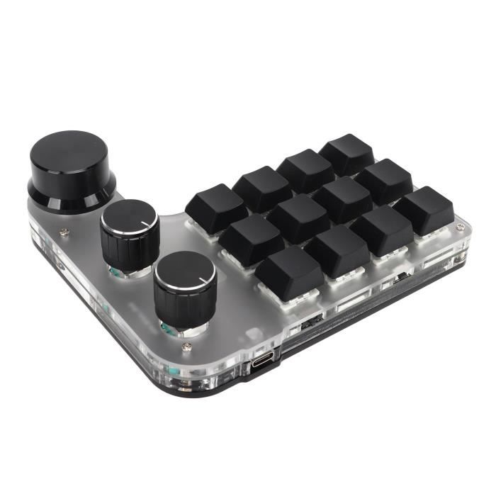 Clavier de jeu mécanique USB C - Utilisation à une main - Clavier macro programmable - 16 touches - 3 boutons Caractéristiques : Augmentez votre productivité avec notre clavier macro programmable Songle avec 16 touches personnalisables et 3 boutons rotatifs pour les jeux et le travail de bureau. Plusieurs couches:Ce clavier mécanique à une main vous permet d'enregistrer trois ensembles différents de réglages de touches et de les appliquer à différents logiciels et jeux à tout moment pour améliorer l'efficacité du travail et l'expérience de jeu Avec sa connexion filaire, sa structure portable, ce clavier s'intègre parfaitement dans différents systèmes, un outil essentiel pour améliorer les flux de travail numériques. Remarque : Les mesures étant prises à la main, les tailles indiquées peuvent varier de 1 à 2 cm. Avec sa connexion filaire, sa structure portable, ce clavier s'intègre parfaitement dans différents systèmes, un outil essentiel pour améliorer les flux de travail numériques Macro Pad Elektronica Clavier Mécanique Macro Programmable à Une Main, 16 Touches, 3 Boutons, Interrupteur Bleu, Mini Clavier Mécanique Remplaçable à Chaud Pour Jeu, Bureau, Médias (noir Manette Turtle Beach Caractéristiques : Section définie : 16 touches, 3 boutons peuvent être réglés dans le sens des aiguilles d'une montre, poussés ou dans le sens inverse des aiguilles d'une montre. Veuillez permettre une légère différence de couleur en raison des différentes résolutions d'écran. Que ce soit pour les jeux de compétition, le développement de logiciels ou le travail quotidien au bureau, ce petit clavier augmente l'efficacité du travail et du divertissement Modifier un seul caractère Édition continue des caractères (prend en charge jusqu'à 18 caractères). Clavier Programmable, Clavier Mécanique Pratique À Une Main 6 Touches Réglage du délai (chaque touche peut régler un délai) La rotation avant et arrière du bouton nécessite le réglage des fonctions ci-dessus lorsqu'il est pressé. Un petit clavier mécanique à 16 touches avec connexion filaire peut être utilisé pour le jeu Matériau fort: le macro-pad adopte et les touches acryliques et la coquille du corps, ainsi que les boutons en alliage en aluminium, a une excellente qualité. Vous pouvez utiliser en toute confiance Voir plus de détails