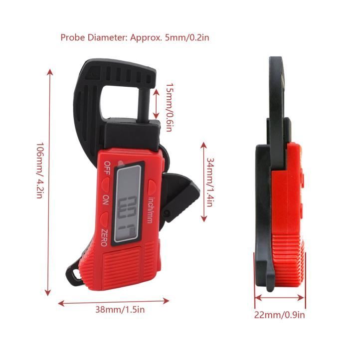 Données techniques Plage de mesure: 0 - 12 mm / 0,5 pouce Résolution: 0., 01 mm, 00005 Précision: ± 0,1 mm, 0005 Température de fonctionnement: 0 à 40 °C Température de stockage: - 20,70 °C Humidité relative: ≤ 80% Le forfait comprend: 1 X jauge d'épaisseur EN STOCK : Jauge d'Epaisseur Numérique 0-12mm Micromètre Électronique Outil de Mesure de Jauge D'épaisseur Étrier Mètre Largeur avec Écran LCD pour Papier Cuir PU Feuille de Métal Bijoux, Nazalus02K0220240708034 pas cher. Livraison rapide partout en France Description: La jauge d'épaisseur est équipée d'un grand écran LCD numérique pour faciliter la lecture des données. Le corps principal est en plastique d'ingénierie de haute qualité, léger et durable. Il a une forme et une fonction similaires à celles d'un micromètre et est principalement utilisé pour mesurer le diamètre extérieur et l'épaisseur d'un tube ou d'une tige. 3.8 out... Taille Alimentation:pile bouton LR44/SR44 1,5 V (non incluse) Dimensions: 110 x 60 x 20 mm / 4,33 x 2,36 x 0,78 Taille de l'écran: 33 x 10 mm / 1,3 x 0,39 MICROMETRE,0-25.4mm 0.01mm--Micromètre numérique XCAN 0 12.7mm-0 25.4mm 0.001mm 0.00005 【Performance Performance du produit】 Cet étrier d'épaisseur prend en charge la fonction de réinitialisation à n'importe quelle position, le commutateur du système métrique et impérial, la mise sous/hors tension manuelle et la mise hors tension automatique 【Large application】 Cette jauge d'épaisseur convient pour mesurer des situations qui nécessitent en particulier une isolation et une protection magnétique ou anti-rayures, elle peut être utilisée pour mesurer l'épaisseur de papier, cuir PU, tôle, bijoux, batterie et matériaux magnétiques, etc. Micromètre électronique Digital 1 Pcs 0-12mm 0.01mm 0.0005 Pouces Micromètre Électronique Précis Cadran Numérique Jauge D Pied A Coulisse Digital Affichage numérique à cristaux liquides La jauge d'épaisseur adopte un grand écran LCD numérique pour faciliter la lecture des données Instruction: 1., Appuyez sur le bouton marche / arrêt pour activer l'alimentation., 2., Vérifiez si 0,00 est affiché. Sinon, appuyez sur le bouton zéro pour réinitialiser., 3., Appuyez sur le déclencheur d'estampage, placez la pièce et relâchez le déclencheur.