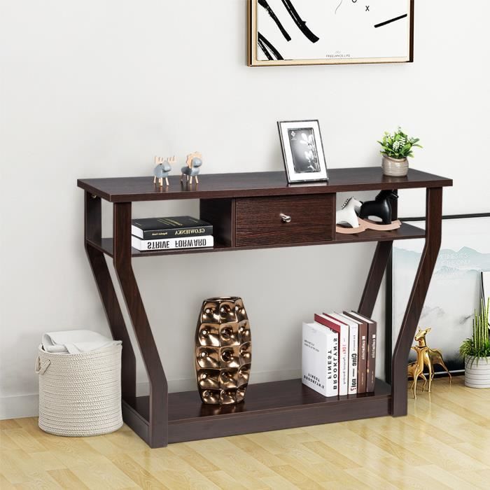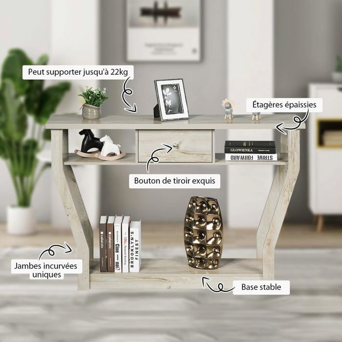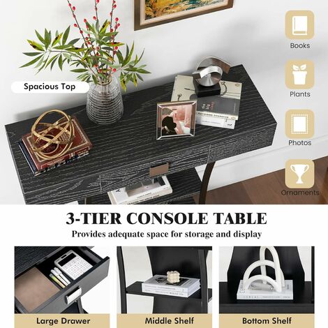 Construction Robuste & Stable - Le bois de pin naturel et le MDF de haute qualité constituent la structure stable et solide de notre table d'entrée, ce qui lui confère une forte capacité de charge et une longue durée de vie. Vos différents objets tels que livres, décorations, albums photos peuvent être organisés. Spécifications : Couleur : Noir/Blanc/Café Matériau : Pin, MDF Dimension hors tout : 79 x 32 x 86 cm (L x l x H) Poids net : 7 kg Capacité de charge du dessus : 40 kg Capacité de charge des étagères : 24 kg Livraisons : 1 x Table Console 1 x Manuel Avertissement De Sûreté Veillez à utiliser la sécurité anti-basculement pour éviter que l'étagère ne bascule. Les renforts en X des deux côtés améliorent non seulement la stabilité structurelle, mais rendent également l'ensemble plus beau sur le plan géométrique. Montage simple et rapide avec notre instruction d'installations GOPLUS Table Console à 2 Niveaux, Table d'Entrée avec Structure en Il vous facilite la vie sans prendre trop de place et sans vous gêner. Style Simple & Classique - Les couleurs classiques et les lignes épurées ajoutent une beauté visuelle à cette table d'entrée de style contemporain, conférant un charme unique à votre maison. GOPLUS Table de canapé Console à 3 Niveaux, 30P x 100l x 91.5H, Table d... Console Entree Giantex Table Console à 3 Niveaux Avec Tiroir Et étagères De Rangement, Table D'entrée En X Pour Couloir Salon Et Chambre A Coucher Table Dappoint Gris Table Console Pin Mdf Qu'il s'agisse d'objets décoratifs, de livres ou de lampes, vous trouverez l'espace de rangement adéquat. Ce meuble simple et polyvalent est parfait pour le salon, l'entrée, la salle à manger ou le bureau. Giantex Table Console en Bois à 3 Niveaux, Bibliothèque... [Grand espace de rangement :]Cette bibliothèque comprend de grandes étagères ouvertes à 3 niveaux, qui peuvent facilement accueillir divers objets, tels que des livres, des photos, des CD, des bibelots et des essentiels de bureau Caractéristiques : Table console fabriquée avec des matériaux de haute qualité De plus, le dispositif anti-basculement permet de la fixer fermement au mur pour garantir la sécurité d'utilisation. Description du produit Avec ses 3 niveaux d'étagères ouvertes, cette table d'entrée compacte offre un vaste espace de rangement et constitue une solution de rangement idéale pour les espaces limités. La surface de table imperméable et résistante doit simplement être nettoyé avec un chiffon doux pour briller comme neuf.
