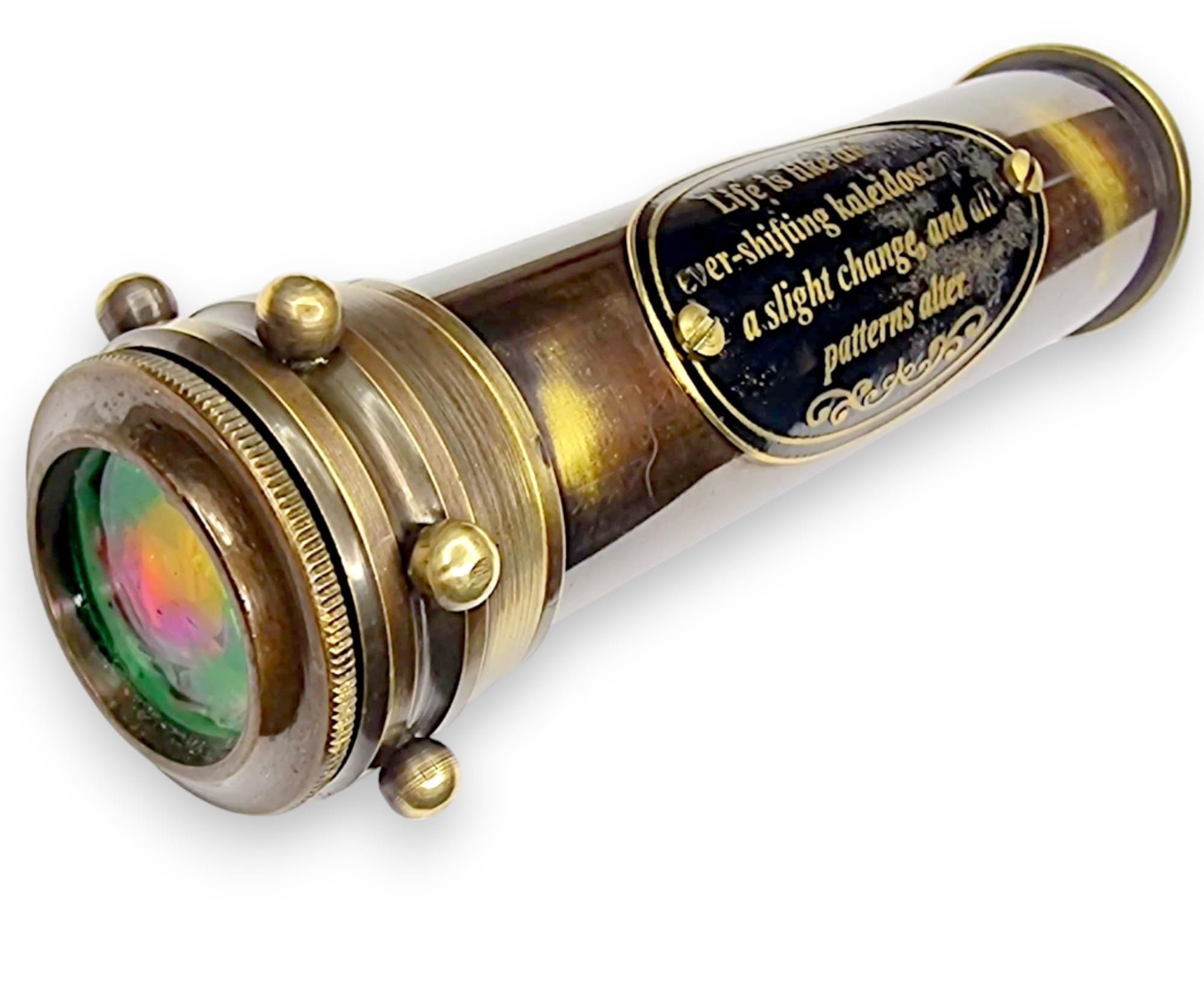 Beau emballage cadeau : Présenté dans un élégant coffret cadeau, ce kaléidoscope est prêt à être offert et chéri comme un cadeau unique et attentionné. Idée cadeau unique : Parfait pour les anniversaires, les remises de diplômes, ou comme cadeau unique pour les amateurs d'antiquité, ce kaléidoscope ajoute une touche de nostalgie et de merveille. Kaléidoscope en laiton avec lunette de visée en marbre, kaléidoscope en marbre fait main sur mesure. Décoration de maison et de bureau, cadeaux de Noël, idées cadeaux uniques ANCIENNE BOUSSOLE DE poche nautique en laiton, boussole marine, étui en... Effets visuels captivants : La combinaison de miroirs et de perles colorées à l'intérieur du kaléidoscope crée de superbes motifs symétriques qui captivent l'œil. Ancien porte-clés kaléidoscope nautique style phare en laiton pour Le kaléidoscope marron antique est livré avec un bel étui en cuir, c'est le meilleur cadeau pour votre famille et vos amis. Un cadeau unique pour vos enfants, petits-enfants, etc., Couleur : marron antique , Matériau : laiton , Taille : 15,2 cm Kaléidoscope Fait Main 15.2 Cm Kaléidoscope Personnalisé En Laiton Avec étui En Cuir - Cadeau Nautique étui Cuir Protection Fabrication de qualité supérieure : Fabriqué à partir de laiton de qualité supérieure, ce kaléidoscope est conçu pour durer, avec des détails complexes qui mettent en valeur la compétence et le dévouement de l'artisan. Description du produit Kaléidoscope en laiton nautique : Fabriqué à la main avec précision, ce kaléidoscope en laiton d'inspiration nautique offre une expérience visuelle fascinante. Étui en cuir de sécurité : Livré avec un étui de protection en cuir pour garantir un rangement sûr et un transport facile, ce qui en fait un excellent cadeau pour les enfants et les adultes.