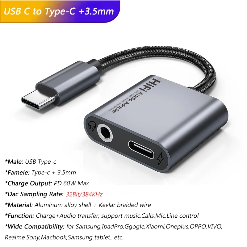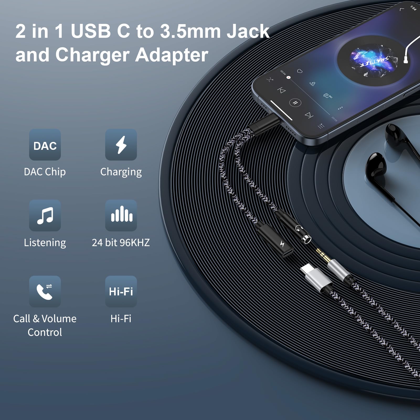 Que vous regardiez des films, jouiez à des jeux ou écoutiez de la musique, l'adaptateur est idéal pour une utilisation en mode paysage et est confortable à tenir sans câbles emmêlés AuTech® Type C 35mm Jack 2 en 1 Adaptateur USB-C Audio + Recharge Adaptateur de Prise Casque Adaptateur audio pour casque 2025 : adaptateur USB-C vers jack 3,5 mm. Qualité sonore, finition et compatibilité Son boîtier métallique robuste le protège des agressions extérieures, tandis que ses composants ABS lui assurent une longue durée de vie. Plug and Play, Facile à Utiliser – Cet adaptateur USB C vers jack ne nécessite aucun logiciel ni pilote à installer. Que vous l'utilisiez au quotidien ou en voyage, cet adaptateur est pratique et robuste pour vous accompagner partout. La conception à angle droit de l'adaptateur réduit la tension du câble et facilite son utilisation en mode paysage. La taille compacte de l'adaptateur de seulement 40 x 10 x 8 mm s'intègre facilement dans n'importe quel sac, ce qui le rend idéal pour la maison et les déplacements Cet adaptateur USB-C vers 3,5 mm avec fonction de charge est la solution idéale pour recharger votre appareil et écouter de la musique simultanément via un casque ou des enceintes. Cable Jack Usb C Adaptateur USB C + Lighting Jack 3,5mm De Casque Adaptateur IPhone Cable Jack I-Phone Type C Vers Aux Puce DAC Haute Résolution Compatible Avec IPhone 16 15 14 13,Samsung S24 S23 S21,MacBook/Xiaomi Adaptateur Audio Et Charge Simultanée Aucune installation de logiciel n'est requise : il suffit de le brancher et c'est parti ! Introduction Avec la disparition progressive de la prise jack 3,5 mm sur les smartphones, tablettes et même ordinateurs portables, l’adaptateur USB-C jack est devenu un... Cet adaptateur prise jack USB C est idéal pour les amateurs de musique qui apprécient une expérience d'écoute authentique. Cet adaptateur USB C jack 3., 5 mm fonctionne parfaitement avec l'iPhone 16, l'iPhone 15, le Samsung Galaxy S24, Huawei et de nombreux autres modèles, vous permettant de charger votre appareil tout en écoutant de la musique sans affecter les performances Il prend en charge un taux d'échantillonnage de 24 bits/96 kHz, vous permettant de profiter d'une musique claire et pure sans perte de détails, ce qui en fait le choix idéal pour les mélomanes. Idéal pour ceux qui sont toujours en déplacement et qui souhaitent recharger leur appareil tout en écoutant de la musique. Adaptateur 2 en 1 avec Prise en Charge de Charge et Audio – Cet adaptateur de port USB-C vers 3,5 mm combine les fonctions d'un adaptateur de casque avec des capacités de charge. L'adaptateur USB C vers jack 2 en 1 prend également en charge les commandes de microphone et d'appel, le tout dans un seul adaptateur pratique Vous pouvez profiter de votre musique dans la plus haute qualité sans aucune perte de compression Largement compatible, il prend en charge une large gamme d'appareils, notamment l'iPhone 16/15, le Samsung Galaxy S24 Ultra, Huawei, l'iPad Pro et Xiaomi.