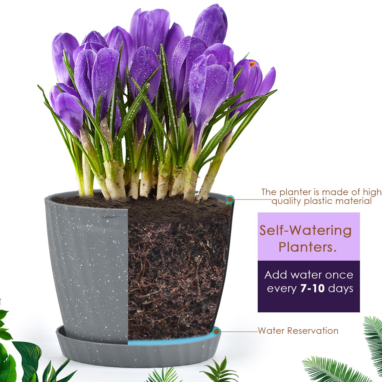 Pots à arrosage automatique : les jardinières ont un distributeur d'arrosage amovible. Différentes tailles : ces pots à arrosage automatique se combinent avec 3 tailles différentes. Il y a une ficelle au bas du pot à liens, que ce soit pour jouer ou pour les affaires, pas besoin de vous soucier que les plantes et les fleurs fanent. Matériau fabriqué en plastique recyclable durable, les pots de fleurs en plastique solide protègent les plantes et le sol, mais pas trop lourds. Un réservoir séparé sépare complètement l'environnement de croissance des plantes de l'environnement de stockage de l'eau, et nous n'avons plus à vous soucier de l'inondation des plantes. QRRICA Plant Pots 10/9/8/7.5/7 inch Self Watering Pots, Set of 5 Plastic Planters with Drainage Holes and Saucers,Plastic Flower Pots,Nursery Planting Pot for Indoor Out Door Plants(Green Jardinières Plastique Drainage Plant Pots 10/9/8/7.5/7 Inch Self Watering Pots, Set Martinique Self Watering Hanging Planter Apportez-nous un monde coloré visuellement.