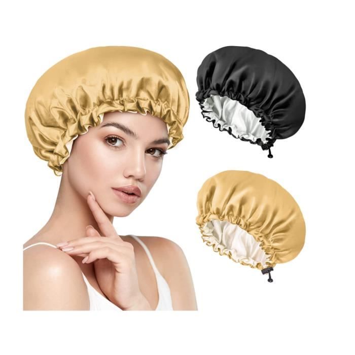 Lot de 2 bonnets en satin pour dormir - Extra longs - Avec 2 bandes élastiques réglables et respirantes - En soie - Pour cheveux bouclés et lisses - Noir Fonctionnalités: 1., Il peut réduire la friction entre vos cheveux et l'oreiller, protéger vos cheveux du dessèchement, de la casse et de la chute pendant la nuit, mieux protéger vos cheveux et leur donner plus de brillance., 2., Notre bonnet à nouer dispose d'une longue sangle qui vous permet de régler le maintien de la capuche sans tirer sur le cuir chevelu, ce qui garantit une agréable expérience de port nocturne., 3., Il s'adapte à une variété de coiffures et de types de cheveux, que vous ayez des cheveux longs et raides, des cheveux longs bouclés, des tresses ou des perruques. Matériaux de qualité supérieure : les longs bonnets en satin pour dormir sont fabriqués en coton satiné de qualité supérieure. La surface est lisse, douce et confortable, douce pour la peau et respirante La surface est lisse, douce et confortable, douce pour la peau et respirante. Réversible avec 2 couleurs, les deux côtés sont doux et soyeux pour les cheveux. pour vous offrir plus de confort. Bonnet Nuit Bonnet Double Couche Satin Soie Satin Réglable - Protection Cheveux Bouclés - Double Couche - Rose Silky Twist Bonnet Bonnet Soie Cheveux Bouclés Le design élastique ne serre pas et ne laisse aucune trace sur la tête. Longue bande élastique et boucles de sécurité : le bonnet de sommeil en soie a une bande élastique et des boucles sur le front pour assurer un ajustement ferme. Conçu pour les cheveux longs : ce bonnet de sommeil long a un grand espace pour contenir tous vos cheveux, vous pouvez y mettre beaucoup de cheveux longs et épais. Bonnet en soie double couche : la double protection garde votre literie propre lorsque vous dormez avec des produits capillaires pour la nuit. Bonnet de Nuit 2Pcs Bonnet Satin Cheveux Nuit Ajustable Bonnet Soie Cheveux N Pas de perte de couleur pour teindre vos cheveux et l'oreiller. Lavage à la main recommandé pour maintenir une qualité durable. Laissez les bonnets de sommeil sécher à l'air libre pour conserver leur forme et leur élasticité