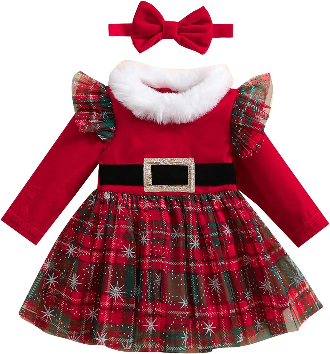 Suefunskry-Tenues de Noël pour bébés filles, robe barboteuse en velours avec bordure en fourrure à manches longues, ensemble de bandeau de sauna, vêtements de princesse de Noël pour nouveau-nés / Vêtements pour Features: Ensemble robe noël bébé fille, robe rouge à manches longues et col fourrure, avec tutu jupe en tulle imprimé, robe mère noël et bandeau YIZYIF Enfant Fille Robe Noël Costume Lutin de Noël Tutu Robe Princesse... Votre petite fille sera la plus mignonne à la fête de Noël dans cette magnifique robe de princesse rouge. La jupe ample et confortable est parfaite pour virevolter et danser, et la ceinture brillante ajoute une touche d'élégance Veuillez consulter le tableau des tailles avant de passer commande., ☀ Inclure: 1 * Robe + Bandeau. Veuillez consulter le tableau des tailles avant de passer commande Robe Princesse Bébé de Noël à Tutu Assurance qualité: La tenue de noël bébé fille est en coton et en polyester mélangé, agréable à la peau, respirante, confortable à porter ☀ Produits: Robe de noël bébé fille. ☀ Features: Robe rouge en velours à manches longues et col fourrure, avec tutu jupe en tulle imprimé. ☀ Taille: 3-6 mois, 6-12 mois, 12-18 mois, 18-24 mois, 2-3 ans. Bandeau à nœud papillon. ✫ Actual colors will vary slightly due to lighting effects, brightness/contrast, etc. ☀ Occasion: Noël, fête de Noël , fête à thème, cosplay, mascarade, spectacle, vacances, soirée, mariage, quotidien, photographie, etc. ☀ Design: Modèle du Mère Noël.