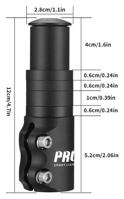 * Design léger, réduit la charge de l'équitation. Hauteur réglable : ce prolongateur de potence est équipé de 3x 6 mm et 1x 10 mm anneaux, offre une augmentation jusqu'à 68 mm. Vous pouvez ajuster les anneaux à votre propre longueur * Extension de potence cachée. Contenu de la livraison : x extension de potence. Installation facile : l'extension de potence de vélo est donc pratique pour les cavaliers pour régler la hauteur du guidon selon leurs souhaits. Léger Adaptateur De Hauteur Guidon - 1-1/8 28.6mm - Head Up Extender Bike Allonge Potence Aluminium Spécification : * Matériau : alliage d'aluminium. Extension de hauteur de guidon : cette extension de potence de vélo est conçue pour augmenter la hauteur du guidon d'environ 3 cm et offrir au conducteur une expérience de conduite confortable et personnalisée sans compromettre la stabilité. 【et léger】Fabriqué en alliage d'aluminium, cette extension de guidon est à la fois légère et garantit une longue durée de vie tout en réduisant la charge de conduite. * Couleur : noir (comme le montrent les photos)., * Dimensions : env. Potence Guidon Pliable HpLive Aluminium 28.6mm Réglable Potence 81 x 28,6 mm (comme le montrent les images)., * Poids : env., 90 g. Potence de guidon vélo : extension adaptateur - Test et Avis