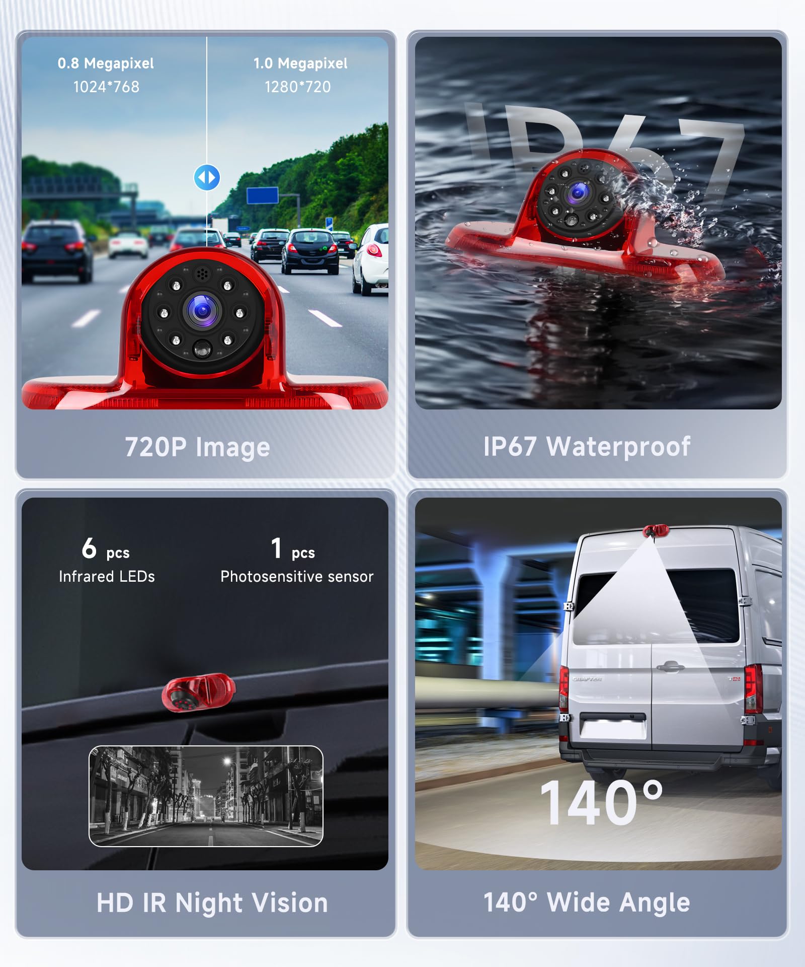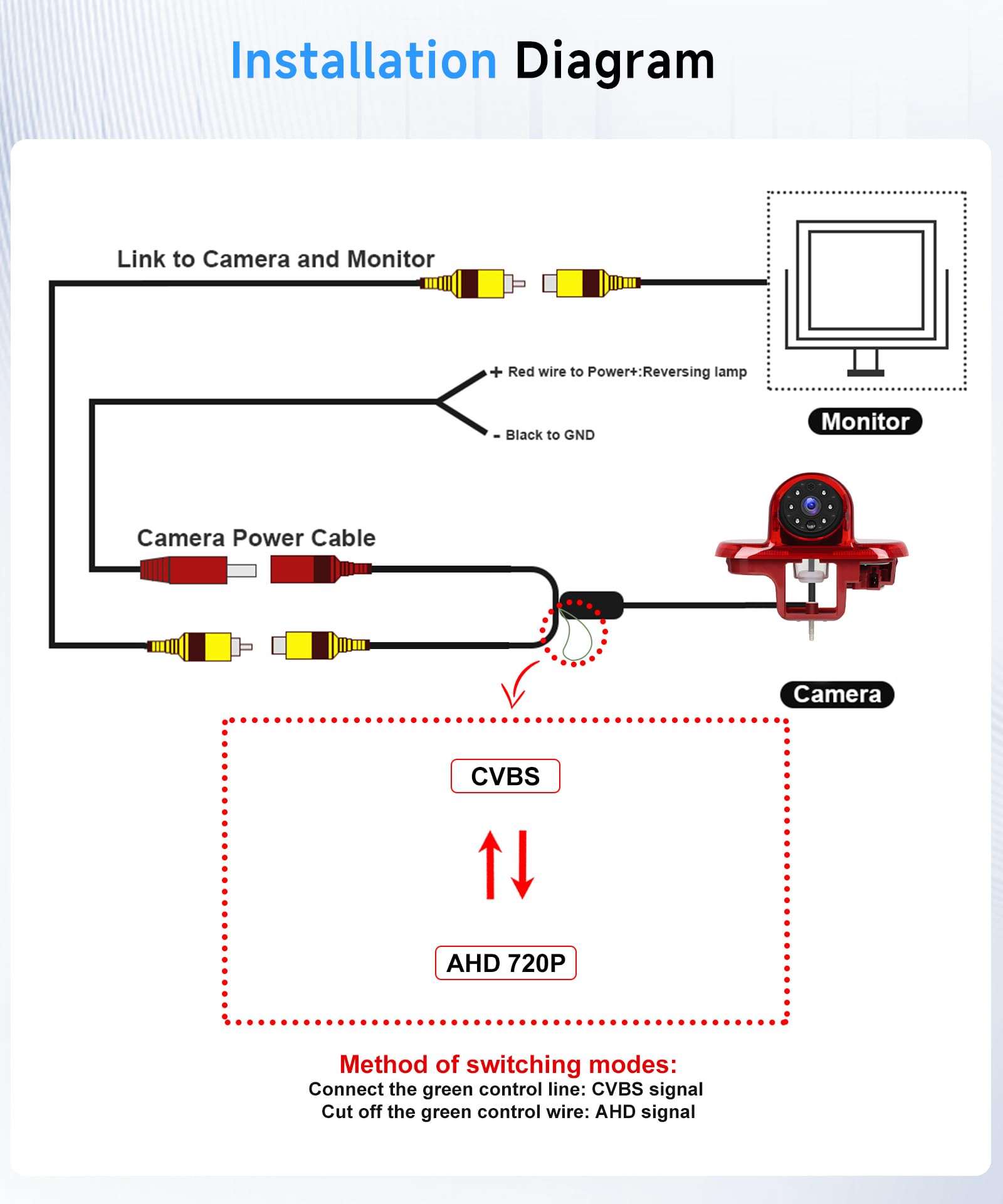 AHD 720P PAL image miroir sans ligne de secours, Description : Pixel : 1 MP, Résolution :, CVBS 640*480 (miroir), Et 1280*720 (image miroir), Format : PAL, Angle de vision : 140° CVBS PAL image miroir avec ligne de secours Vue Arrière Claire et Vision Nocturne : la caméra offre un angle de vision large de 140°, vous permettant de voir clairement les obstacles, les piétons ou les autres véhicules derrière votre voiture, minimisant ainsi les angles morts et réduisant les risques de collision. Le changement de mode est simple : connectez le fil de commande vert pour le signal CVBS ou coupez-le pour le signal AHD. Tension d'entrée : 12 V Caméra de feu stop Caméra de Recul 3ème Feu Stop tanche IP68 Vision... Caméra de recul étanche pour voiture, feu stop élevé, caméra de recul Cette flexibilité améliore la compatibilité et la facilité d'utilisation. Performances Stables et Installation Facile : Dotée d'une connexion filaire, notre caméra garantit une transmission du signal stable et fiable par rapport aux alternatives sans fil. De plus, sa fonction de vision nocturne infrarouge en noir et blanc garantit une capture d'image claire même dans des conditions de faible luminosité ou de nuit, améliorant ainsi votre visibilité et votre sécurité lors de la conduite de nuit. Deux Formats de Signal et Changement de Mode Facile : Cette caméra de recul offre deux formats réglables pour répondre à divers besoins d'affichage : ① Image miroir CVBS PAL avec ligne de recul ② Image miroir AHD 720P PAL sans ligne de recul. Vision Nocturne 140 Caméra De Recul Hodozzy Pour Renault Trafic/Opel - Feu Stop, Vision Camera De Recul Trafic 2 Parfaitement Adapté aux Modèles Populaires : Cette caméra de recul à montage sur le feu stop arrière est spécialement conçue pour les Renault Trafic 2001-2014, les Renault Trafic Combo 2001-2011 et les Vauxhall Vivaro 2001-2014, offrant une compatibilité parfaite et des fonctionnalités améliorées Courant d'entrée : 100 mA, Étanche : IP67, Convient pour : Si votre écran prend également en charge les signaux AHD, vous devez déconnecter le câble de commande vert avant de brancher l'alimentation électrique. Parfaitement Adapté aux Modèles Populaires : Cette caméra de recul à montage sur le feu stop arrière est spécialement conçue pour les Renault Trafic 2001-2014, les Renault Trafic Combo 2001-2011 et les Vauxhall Vivaro 2001-2014, offrant une compatibilité parfaite et des fonctionnalités améliorées. Si votre écran ne prend en charge que l'entrée CVBS, aucune modification n'est nécessaire. Température de fonctionnement : -20 °C à +60 °C La caméra fonctionne avec une tension d'entrée stable de 12 V, offrant des performances constantes dans n'importe quel environnement.