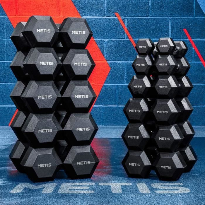 <li>Le revêtement de caoutchouc augmente la durabilité, protège le sol et l'équipement, améliore l'apparence et résulte facile à nettoyer., </li> <ul> en augmentation de 1 kg., </li> Rack de rangement vertical haltères AllFreeWeight AFW - Marques <li>Haltères hexagonaux de 12., 5 à 40 kg., , en augmentation de 2., 5 kg., </li> , </ul> Rack vertical 10 haltères AFW Poignée Chromée Revêtement Caoutchouc Râtelier 3 Niveaux Pour Haltères Hexagonaux Haltères Durables Protection Sol Hex Halteres Neoprene Set Pour Gymnastique Yoga Pilates - Haltere...