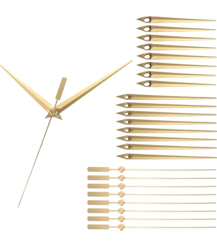 Matériau : Aluminium ; Convient pour le diamètre de l'arbre de l'aiguille des heures du mouvement : 3,6 mm / 0,14 pouce ; Convient pour le diamètre de l'arbre de l'aiguille des minutes du mouvement : 5,5 mm / 0,22 pouce , Avantage : 1., Mécanisme d'horloge tranquille : L'aiguille d'horloge adopte une conception de balayage super silencieuse, offrant un environnement calme pour votre sommeil. Visiter la boutique PATIKIL. 4,3 4,3 sur 5 étoiles (36). PATIKIL A02 A02 Kit de 10 aiguilles d'horloge en aluminium pour réparation d'horloge murale Doré Convient pour la réparation, le remplacement, et également adapté pour différents styles de cadre d'horloge. Précision du temps : L'erreur en une journée est inférieure à 1 seconde., 2., Matériau durable : Ces aiguilles d'horloge sont en aluminium, sûres et durables, avec une bonne résistance à la corrosion, légères, et peuvent être utilisées pendant longtemps. Convient pour la réparation, le remplacement, et également adapté pour divers styles de cadres d'horloge DIY Veuillez noter que l'aiguille des heures doit rester plate pendant le processus d'installation Aiguille des minutes : 5,5 mm Contenu : Lot de 10 aiguilles d'horloge Longueur du trou à la pointe de l'aiguille : Aiguille des heures : 70 mm Aiguille des secondes : 93 mm Aiguille des minutes : 100 mm Avantage : 1., Mécanisme d'horloge silencieux L'aiguille de l'horloge adopte un design de balayage super silencieux, offrant un environnement calme pour votre sommeil. Set d'aiguilles d'horloge S + Silent Movement Veuillez noter que l'aiguille des heures doit rester plate pendant le processus d'installation Remarque : N'utilisez pas de force excessive lors de l'installation, sinon il se pliera. Caractéristiques : Matériau : Aluminium Convient pour le diamètre de l'arbre du mouvement Aiguille des heures : 3,6 mm Convient pour le diamètre de l'arbre du mouvement. Instructions : placez l'aiguille des heures, l'aiguille des minutes et l'aiguille des secondes à la position douze heures dans l'ordre. Cet ensemble de mécanisme vous permettra de fabriquer des horloges en un tournemain ! Ajoutez-y des chiffres et un cadran personnalisé pour créer une horloge... Mécanisme Horloge PATIKIL Kit De Remplacement Des Aiguilles D'Horloge, 10 Kit Horloger Précision de l'heure : L'erreur dans une journée est de moins de 1 seconde., 2., Matériau durable : Ces aiguilles d'horloge sont fabriquées en aluminium, sûres et durables, avec une bonne résistance à la corrosion, légères et peuvent être utilisées pendant une longue période.