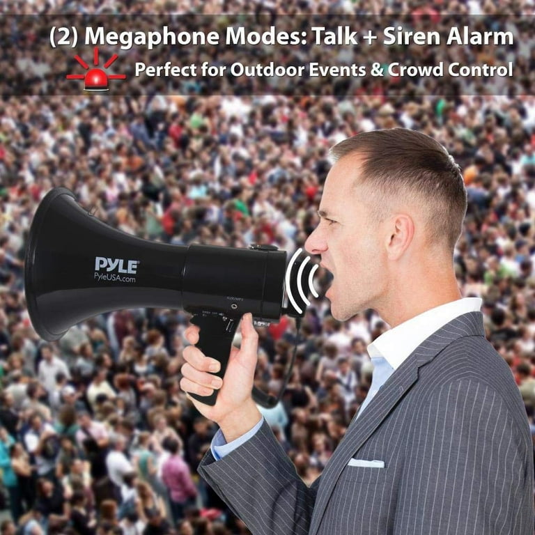 Megaphone Rechargeable Mégaphone Portable Avec Sirène - Pyle - Blanc - 40 Watts Megaphone Puissant